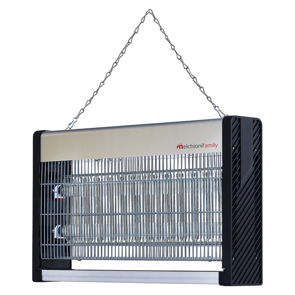 Eleminues insektesh Melchioni 45 W. Llambë UVA. Jetëgjatësia: 50000 - 8000 orë. Tabaka mbledhëse që pastrohet lehtë në pjesën e poshtme. Aplikimi: i brendshëm. Mbulimi: 100m². Mund të vendoset në mur, dysheme ose tavan. Konsumi i energjisë: 45W. Furnizimi me energji: 220 – 240 V AC 50 Hz.