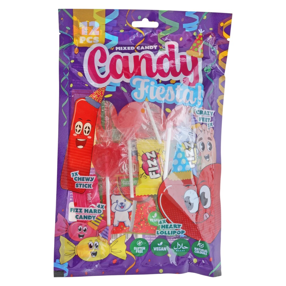 Ëmbëlsira. Përbërësit: sheqer, shurup glukoze, dekstrozë, rregullues aciditeti (E330), aromatizues, ngjyrues (E163, E150a). Karamele përtypëse me aromë luleshtrydheje dhe rrushi. Përbërësit: sheqer, shurup glukoze, yndyrë bimore (palme), rregullues aciditeti (E330), niseshte tapioke, emulsifikues (lecitinë soje), aromatizues, ngjyrues (E163).