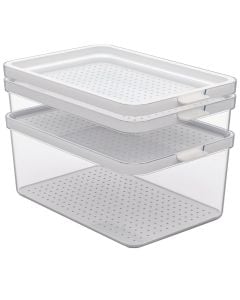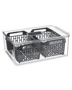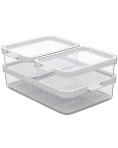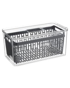 Për të grupuar produkte të ndryshme, duke lehtësuar aksesimin e tyre, si edhe për të parandaluar përzierjen e aromave të ushqimeve në frigorifer mund të përdorni kosha organizues frigoriferi, të cilët ndihmojnë në mbajtjen pastër dhe në rregull të frigoriferit në kuzhinën tuaj. Në Megatek do të gjeni organizues frigoriferi në forma dhe përmasa të ndryshme.