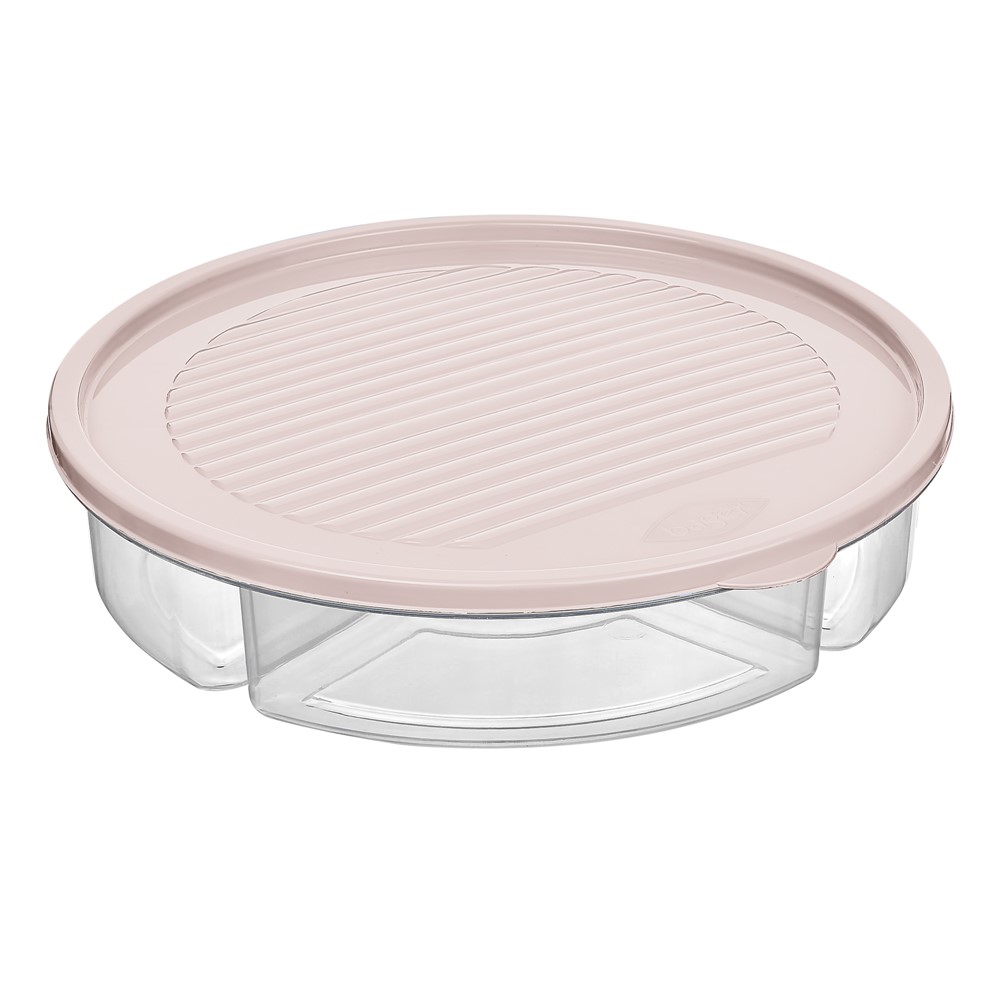 Enë ushqimi, 5 ndarje, me kapak, Smart, PP, transparente/rozë, Ø25 xH5 cm, 2000 cc