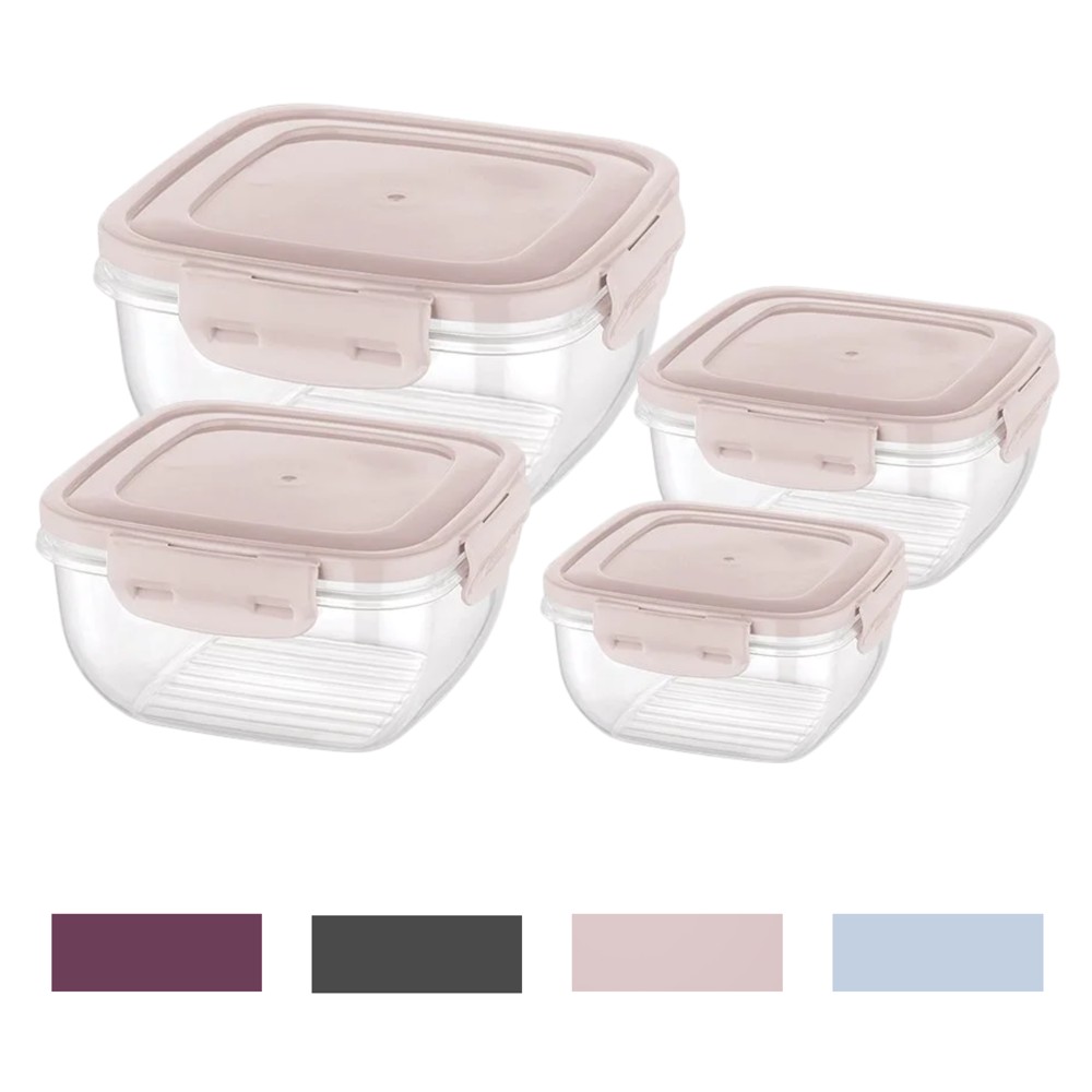 Po vlerësoni:Cook&Lock food container with lid and strainer, PP/Silicone, transparent/assorted colors, 4000 ml / 27.5x20.5x10.5 cm