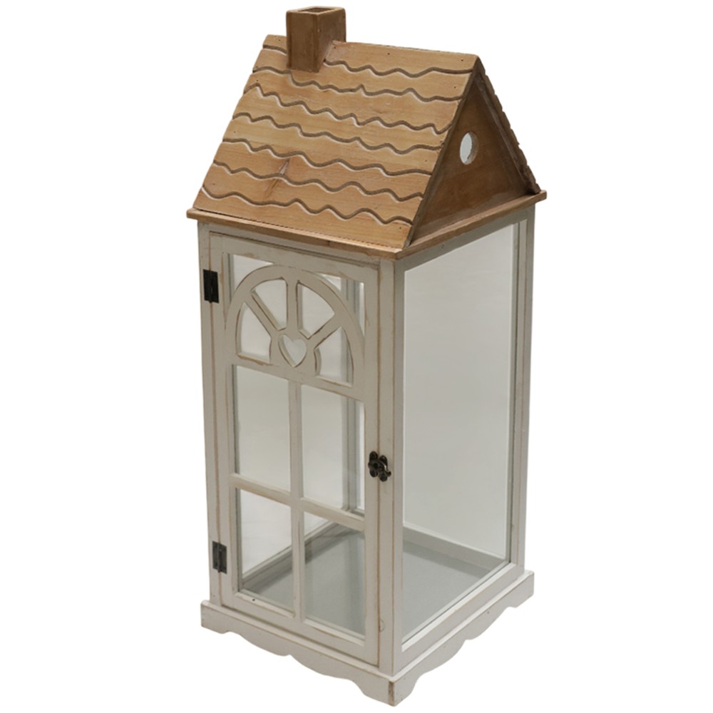 Feneri dekorativ është punuar nga metal dhe dru, në ngjyrë të bardhë që i jep një pamje të ngrohtë dhe elegante. Perfekt për dekorimin e ambienteve të brendshme apo të jashtme.