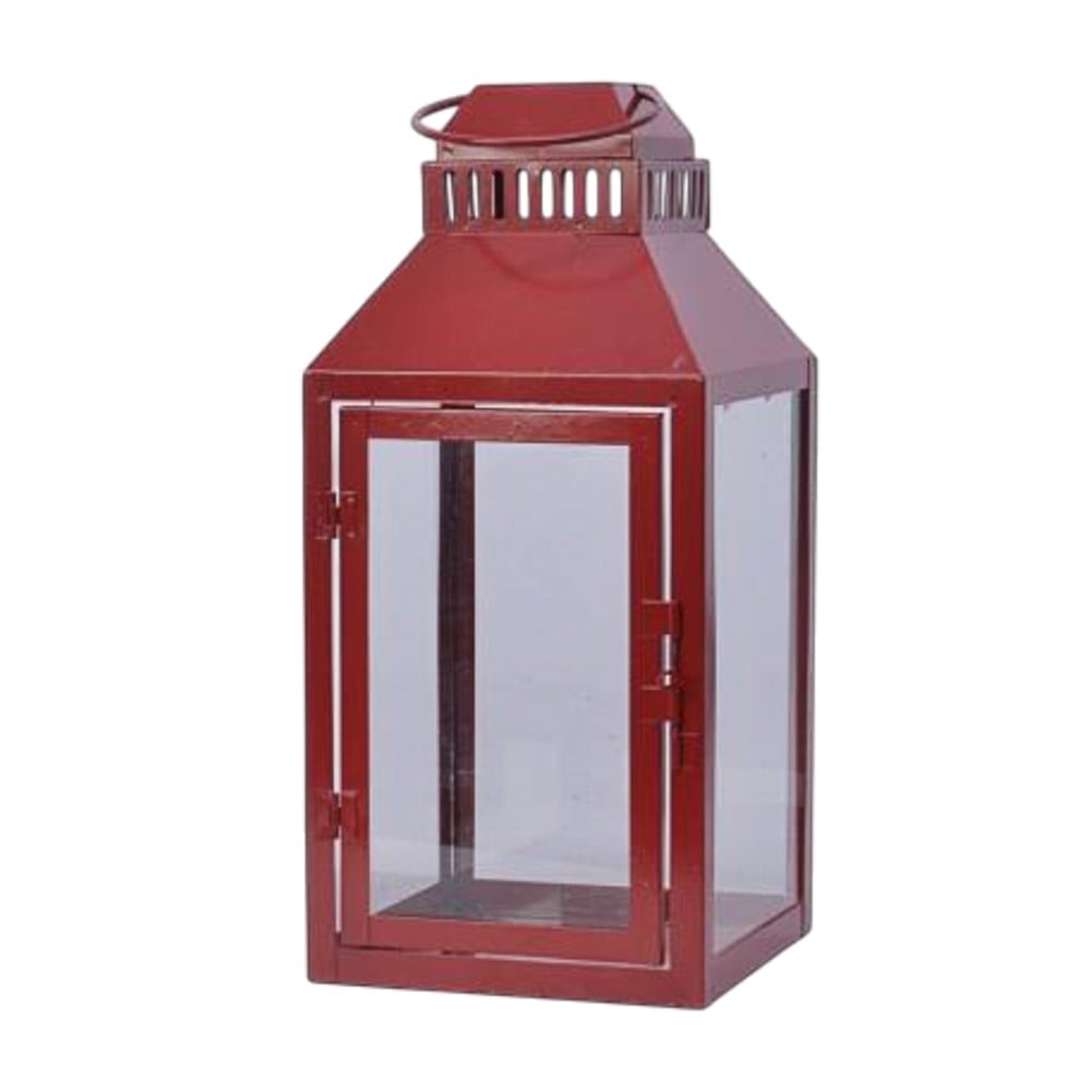Fener dekorativ, M, metalike, e kuqe, 16x16xH35cm