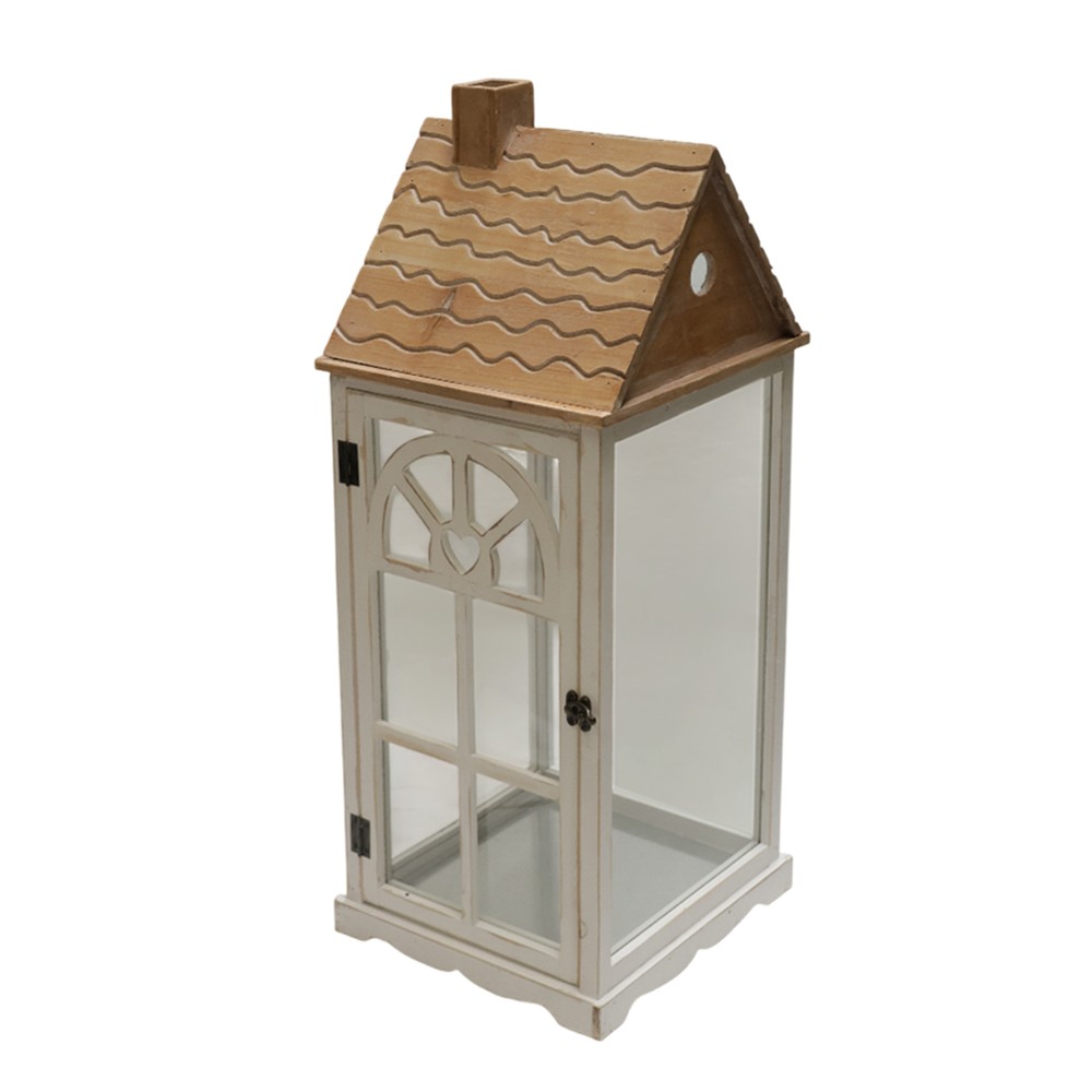 Feneri dekorativ është punuar nga metal dhe dru, në ngjyrë të bardhë që i jep një pamje të ngrohtë dhe elegante.Perfekt për dekorimin e ambienteve të brendshme apo të jashtme.