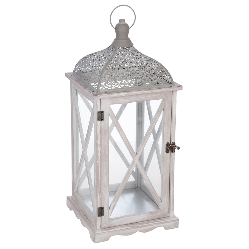 Po vlerësoni:Fener dekorues, dru/xham/metal, e bardhë, L-28x28xH66cm
