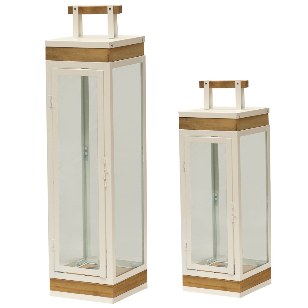 Feneri dekorues set me dy copë është një zgjedhje perfekte për të shtuar një atmosferë të veçantë dhe një ndriçim të butë në ambientin tuaj. Kombinimi i metalit, xhamit dhe drurit në këto fenerë ofron një pamje tërheqëse dhe të harmonizuar. Përmasat dhe dizajni i tyre i veçantë bën që këto fenerë të jenë një pikë referuese e bukur për çdo ambient, duke krijuar një atmosferë të ngrohtë dhe të mrekullueshme. Përdorni këtë set për të shtuar një prekje të veçantë dhe një ndjenjë të mrekullueshme estetike në sallonin tuaj, dhomën e ndenjjes ose kudo tjetër që dëshironi të krijoni një ambient të bukur.