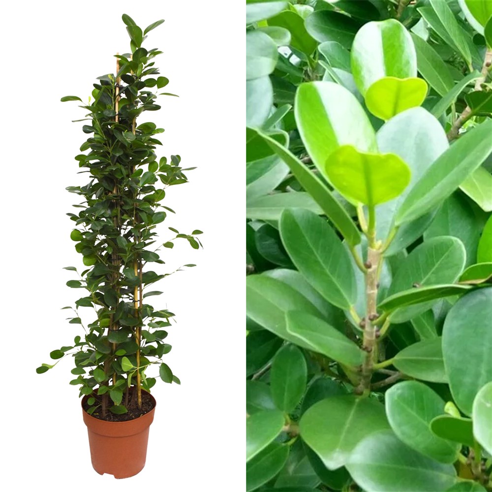 Jepini gjalleri ambjentit tuaj me një lule Ficus, me shumë gjethe të gjelbërta me shkëlqim dhe të larmishëm krijon një bimë të mrekullueshme për të zbukuruar çdo hapësirë. E përkryer për të shtuar jetën dhe strukturën në dhomën tuaj me përfitimin e shtuar për të ndihmuar në pastrimin e ajrit. Ajo nuk ka shumë nevoja, për aq kohë sa ju të gjeni një vend të ndritshëm larg nga rrezet e diellit direkte, jo afër një burimi të nxehtësisë. Pasi të ketë vendin e duhur, përpiquni të mos e lëvizni pasi nuk u pëlqen të zhvendosen.Ujitja kur toka sapo fillon të thahet në sipërfaqe, por mos e lini të thahet plotësisht. Gjatë dimrit mund të zvogëloni ujitjen. Pastroni gjethet në muajt e verës dhe ushqeni me një pleh të lëngshëm gjatë sezonit të rritjes.