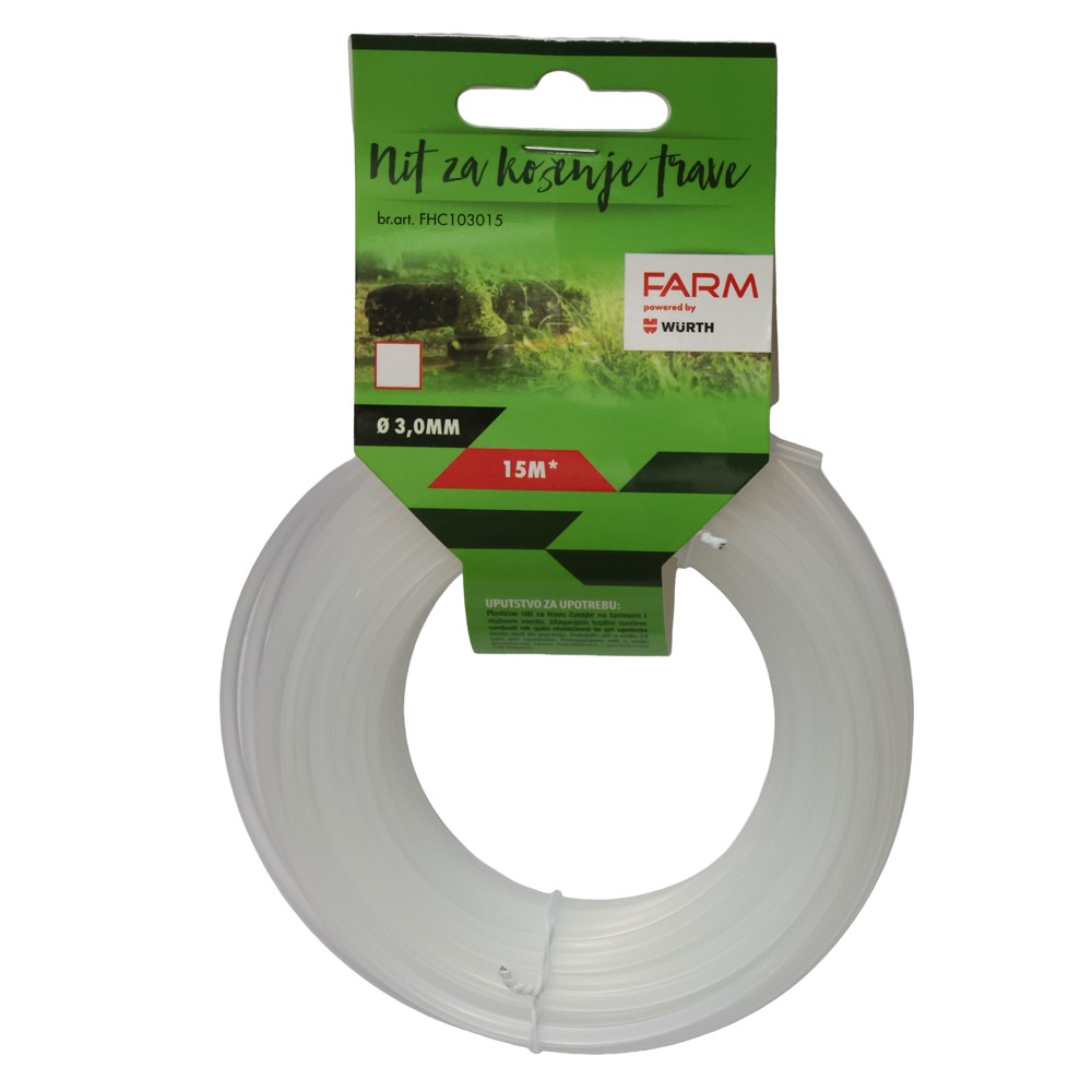 Fije për prerëse bari, Farm, 3.0 mm x 15 m, katrore, e bardhë