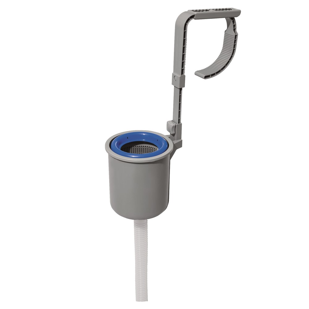 Filtër për pastrimin e ujit të pishinës, me një strukturë mbajtëse prej materiali plastik, e cila është rezistente ndaj ujit, kushteve atmosferike dhe gërryerjes që shkaktohet për shkak të veprimit të agjentëve kimikë dhe elektro-kimikë. Përdoret për pastrimin e ujit në sipërfaqet e pishinave, duke mbledhur gjethet, insektet, pluhurat dhe papastërti të tjera. Filtri është i pajisur me një mekanizëm përshtatës, për vendosjen me lehtësi të filtrit në muret anësore me gjerësi të ndryshme të pishinave, dhe me konektorë që lejojnë lidhjen e filtrit me pompat filtruese, me kapacitet minimal filtrimi prej 2006 l/orë. Mund të pastrohet me lehtësi pas përdorimit. Ky produkt është i përshtatshëm për përdorim me të gjitha llojet e pishinave, duke përjashtuar pishinat me mure anësore me strukturë çeliku dhe pishinat e ndërtuara në tokë.