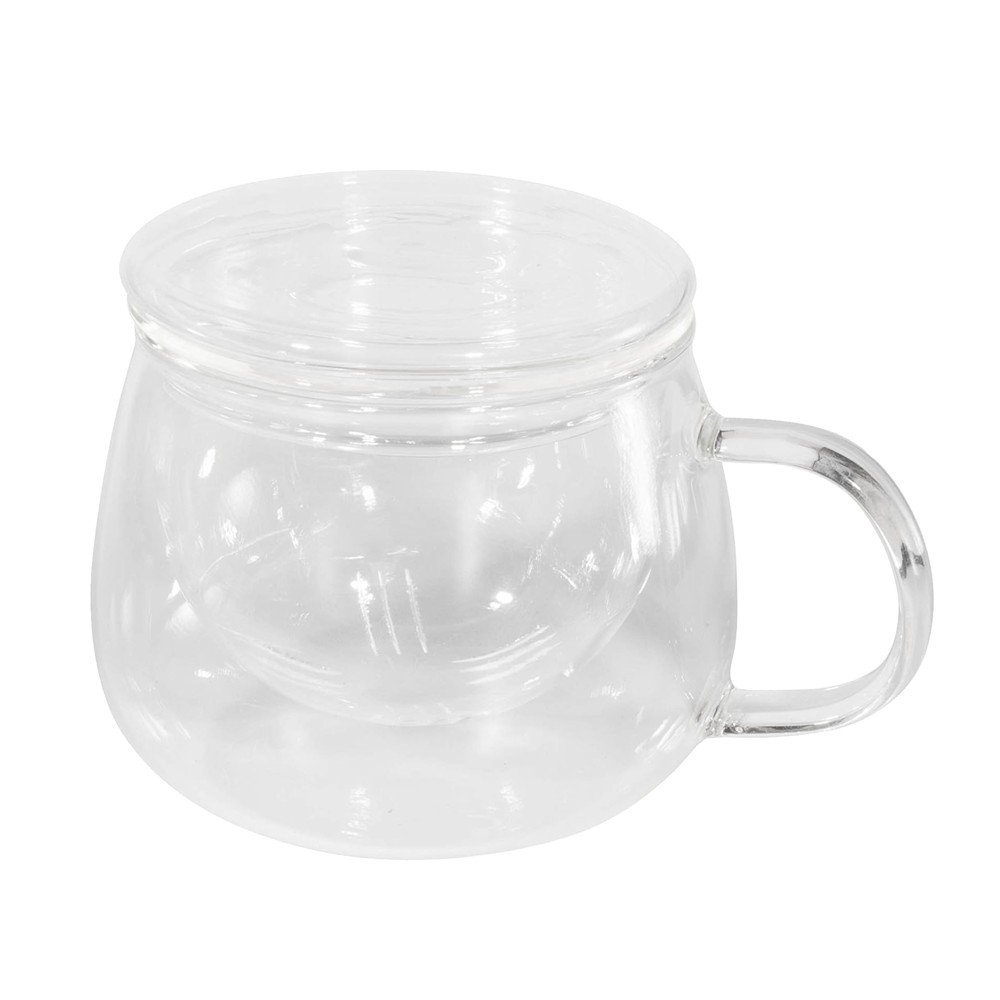 Filxhani dopjo për çaj, i prodhuar nga qelqi transparent, ka një lartësi prej 8 cm dhe një kapacitet prej 350 ml. Ky filxhan ofron një zgjedhje të shkëlqyer për të shijuar çajin në mënyrë të rehatshme. Materialet e qelqit e bëjnë atë të qëndrueshëm dhe të përshtatshëm për përdorim të përditshëm, dhe dizajni transparent lejon përdoruesin të shohë lëngun brenda filxhanit. Kjo dimension e bën të përshtatshëm për përdorim në shtëpi, në zyrë ose në çdo ambient tjetër.
