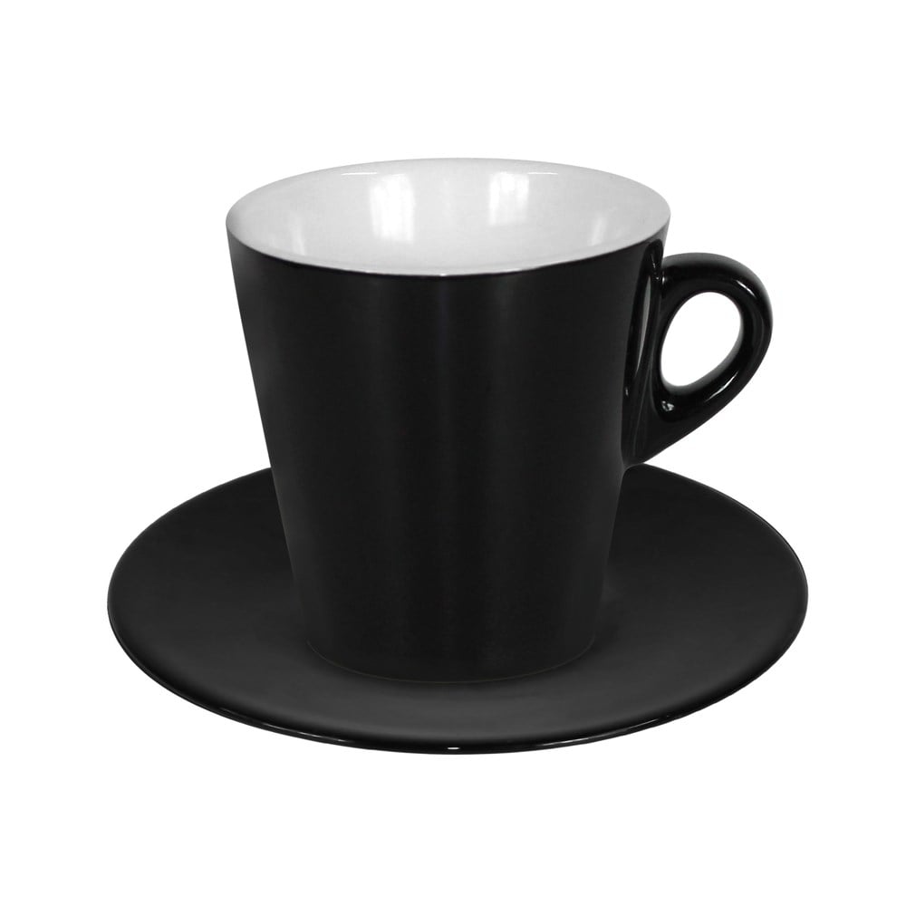 Po vlerësoni:Filxhan caji+pjate, Permasa: 8+12.5cm, Ngjyra: Zeze, Materiali: Porcelan
