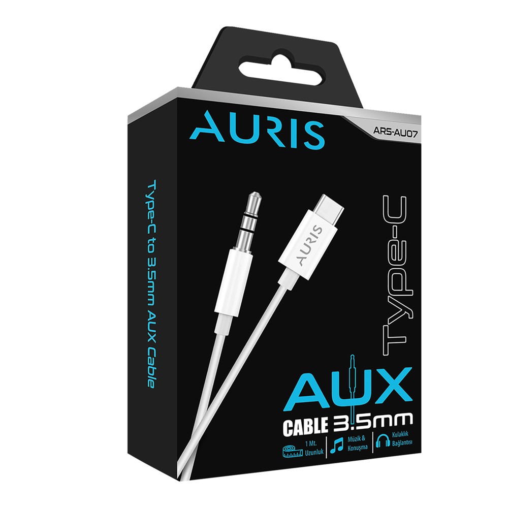 Fishë AUX, Auris, AU07, AUX-Type-C, 3.5 mm, 100 cm, ngjyrë e bardhë