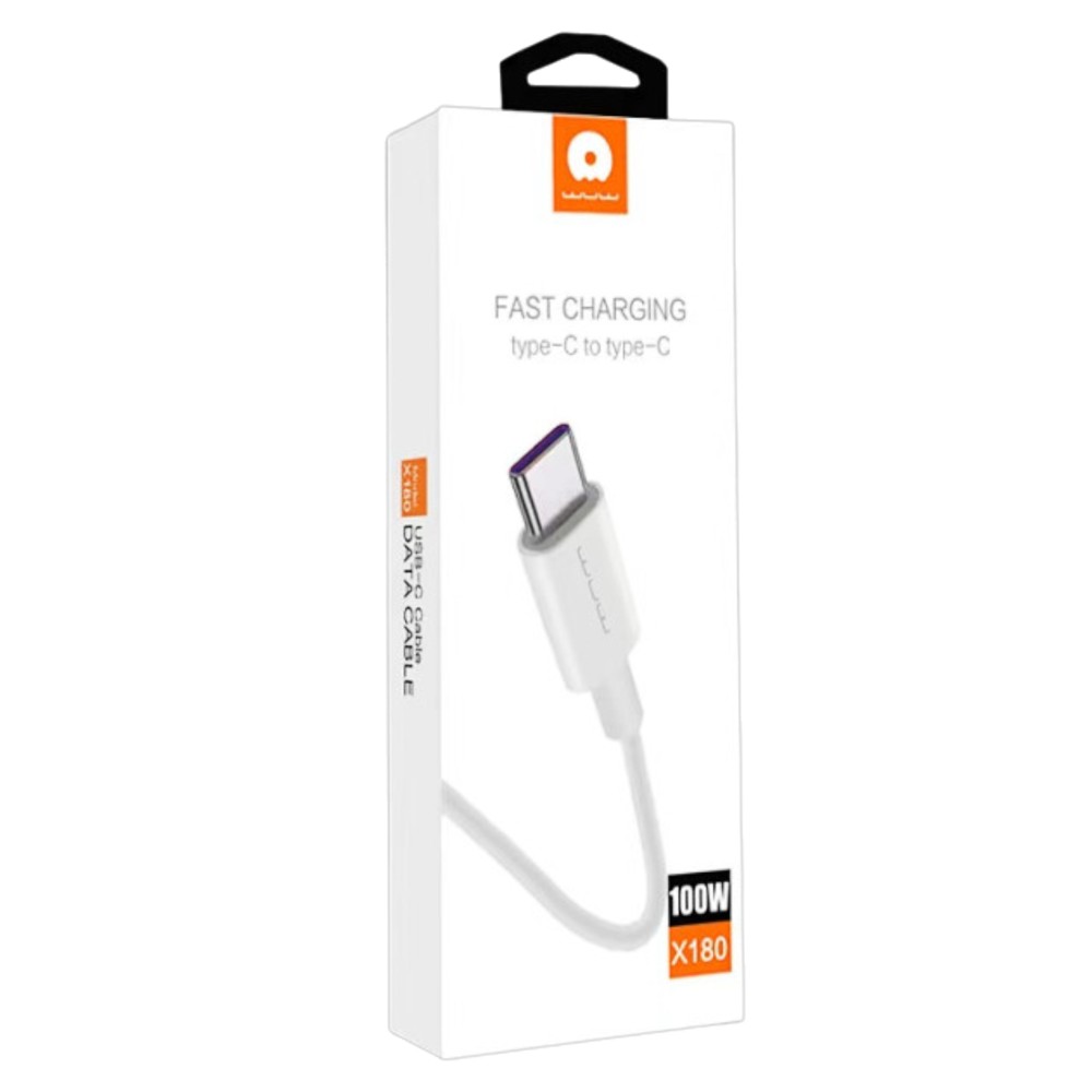 Fishë karikimi, WUW, X180, Type-C-Type-C, 100 W, 100 cm, ngjyrë e bardhë