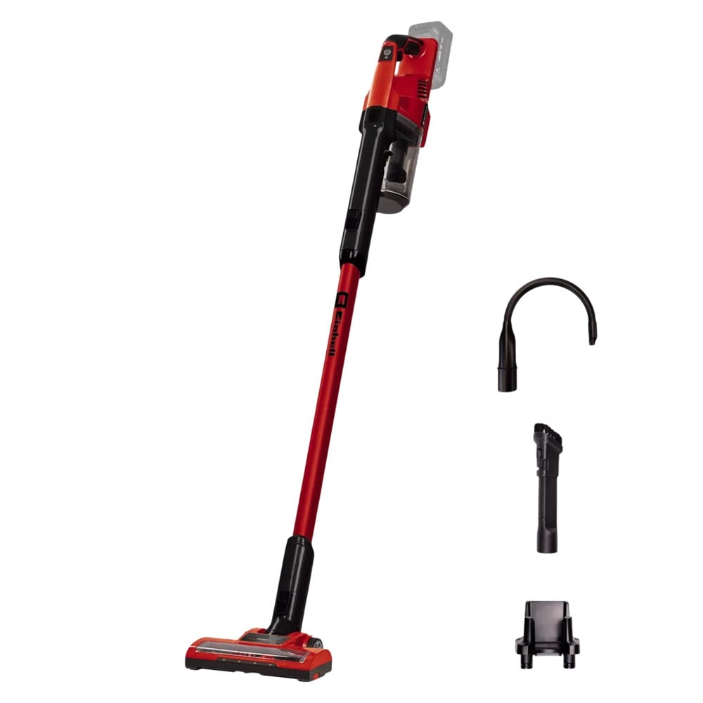 Fshesë vakumi Einhell TE-SV 18 Li-Solo është pjesë e sistemit të baterive multifunksionale dhe të kombinueshëm Einhell Power X-Change. Në varësi të baterisë, mund të arrihen edhe kohë pune shumë të gjata, pasi bateria 6 Ah, për shembull, i siguron fshesës me korrent deri në 80 minuta energji në modalitetin ECO. Katër dritat LED të fokusit dhe gryka e pastrimit mundësojnë pastrim të lehtë, madje edhe të vendeve të errëta dhe të vështira për t'u arritur, si poshtë një shtrati ose dollapi. Rrotat e gomuara janë të super soft dhe mbrojnë dyshemenë nga gërvishtjet. Fshesa me korrent ka dy modalitete. Modaliteti ECO mund të përdoret për papastërtitë normale dhe për kohëzgjatjen maksimale, ndërsa modaliteti BOOST siguron performancë maksimale të thithjes për papastërtitë, si p.sh. aplikimi në tapete etj. Falë kombinimit të dy modeleve, fshesa Einhell është një pajisje praktike 2-në-1.