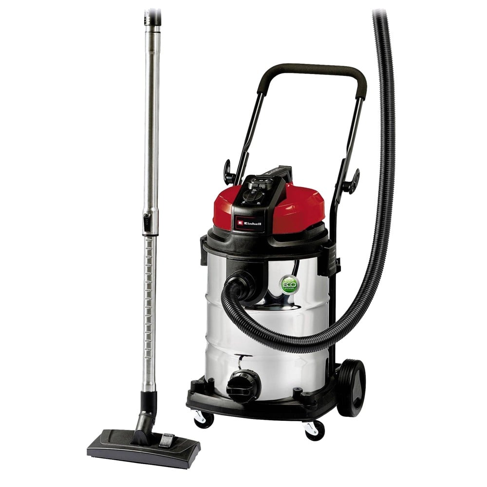 Fshesë me korrent të lagësht dhe të thatë Einhell TE-VC 2230 SA pastron thellë dhe tërësisht, në kontrast me një fshesë me korrent dhe një leckë të pastër. Kjo e bën një fshesë me korrent të lagësht dhe të thatë shtesën e duhur për pajisjet standarde të pastrimit të shtëpisë për papastërtitë e rënda, kokëfortë dhe të thella. Një fshesë me korrent të lagësht dhe të thatë është gjithashtu një ndihmë praktike për ambiciozët që bëjnë vetë për pastrimin e detyrave në ndërtim, në punëtori ose në dhomën e hobi. Brendësia e të gjitha llojeve të mjeteve motorike mund të pastrohet deri në majat e tekstilit me një fshesë me korrent të lagësht dhe të thatë, sediljet dhe veshjet e sipërme, si dhe tapetet dhe veshjet. Fshesë me korrent të lagësht dhe të thatë Einhell është projektuar si një fshesë me korrent ECO për fuqi të lartë thithjeje me konsum të ulët të energjisë dhe përdor 1,150 watts. Enë e papërshkueshme prej çeliku inox mban 30 litra dhe në këtë mënyrë mundëson përdorim afatgjatë. Rregullatori i rrjedhjes së ajrit është i lehtë për t'u arritur në dorezë. Është integruar një lidhje fryrëse për nxjerrjen e vendeve të vështira për t'u arritur. Rrotat e mëdha dhe rrotat sigurojnë transport dhe lëvizshmëri të lehtë. Një prizë automatike e pajisjes për funksionimin e veglave elektrike është e integruar në strehë. Ekziston gjithashtu një mbajtëse praktike shtesë për ruajtjen e rregullt të aksesorëve të dhënë. Kablloja e energjisë 500 centimetra e gjatë mund të lidhet në dorezën e karrocës. Fshesë me korrent të lagësht dhe të thatë është e lehtë për t'u pastruar falë vidës së kullimit të ujit për kullimin e ujit që është thithur. Fusha e dorëzimit përfshin një tub teleskopik të bërë prej çeliku inox (Ø 36 mm), një zorrë thithëse plastike shumë të gjatë (Ø 36 mm) me gjatësi 3 metra, një hundë të madhe kombinimi për qilima dhe dysheme të lëmuara, një çarje dhe hundë tapiceri dhe një filtër shkumë.