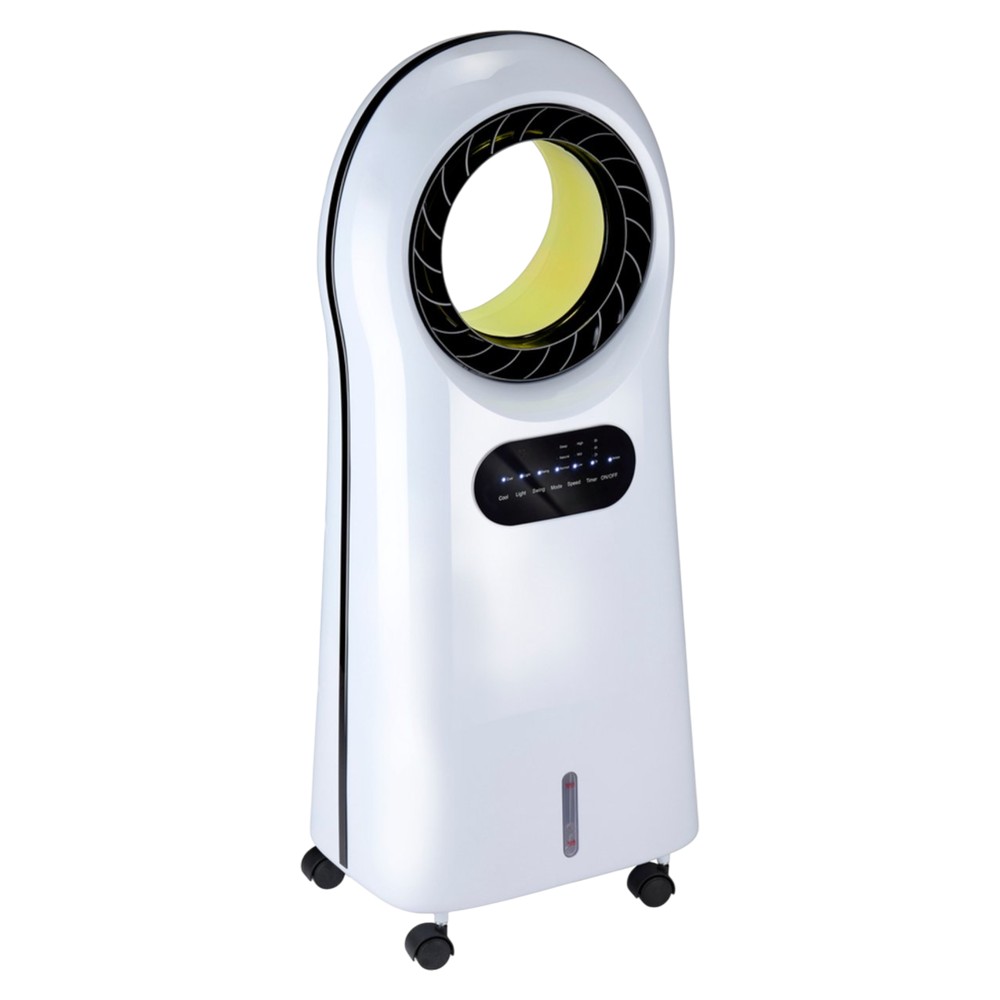 Zbuloni rehatinë maksimale me ftohësin e ajrit pa tehe Lifetime Air. Me dizajnin e tij të përparuar 3-në-1, ky ftohës ajri funksionon si një ventilator i fuqishëm pa tehe, ftohës ajri efektiv dhe lagështues efikas. Dy elementë të integruar ftohës sigurojnë freskim të shpejtë, ndërsa rezervuari i bollshëm i ujit prej 3.5 litrash garanton ftohje afatgjatë. Me telekomandën e përfshirë, ju mund të menaxhoni pa mundim të gjitha funksionet e ftohësit të ajrit, duke përfshirë vendosjen e shpejtësisë së dëshiruar të ventilatorit dhe aktivizimin e dritës së atmosferës. Shijoni ftohje të qetë me zhurmë minimale (më pak se 55 dB), perfekt për mbrëmje të qeta ose punë të pashqetësuar. Ftohësi i ajrit pa tehe Lifetime Air kombinon teknologjinë e përparuar me lehtësinë e përdorimit, në mënyrë që hapësira juaj e jetesës të mbetet gjithmonë e rehatshme, edhe në ditët më të nxehta. Përmasat: 32x23x78cm.