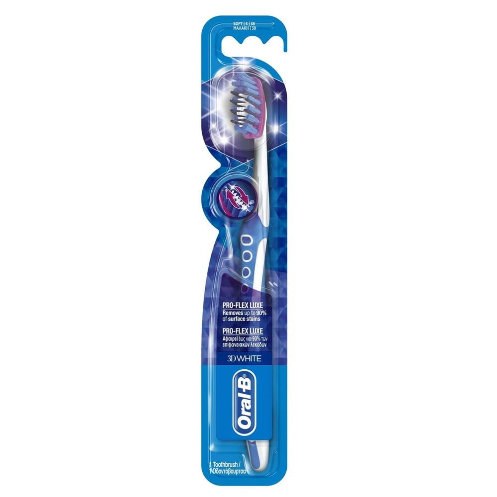 Furçë dhëmbësh me fije fleksibël dhe efekt zbardhues, 3D Luxe Pro-Flex, Oral-B, plastikë, 22x5 cm, blu, 1 copë