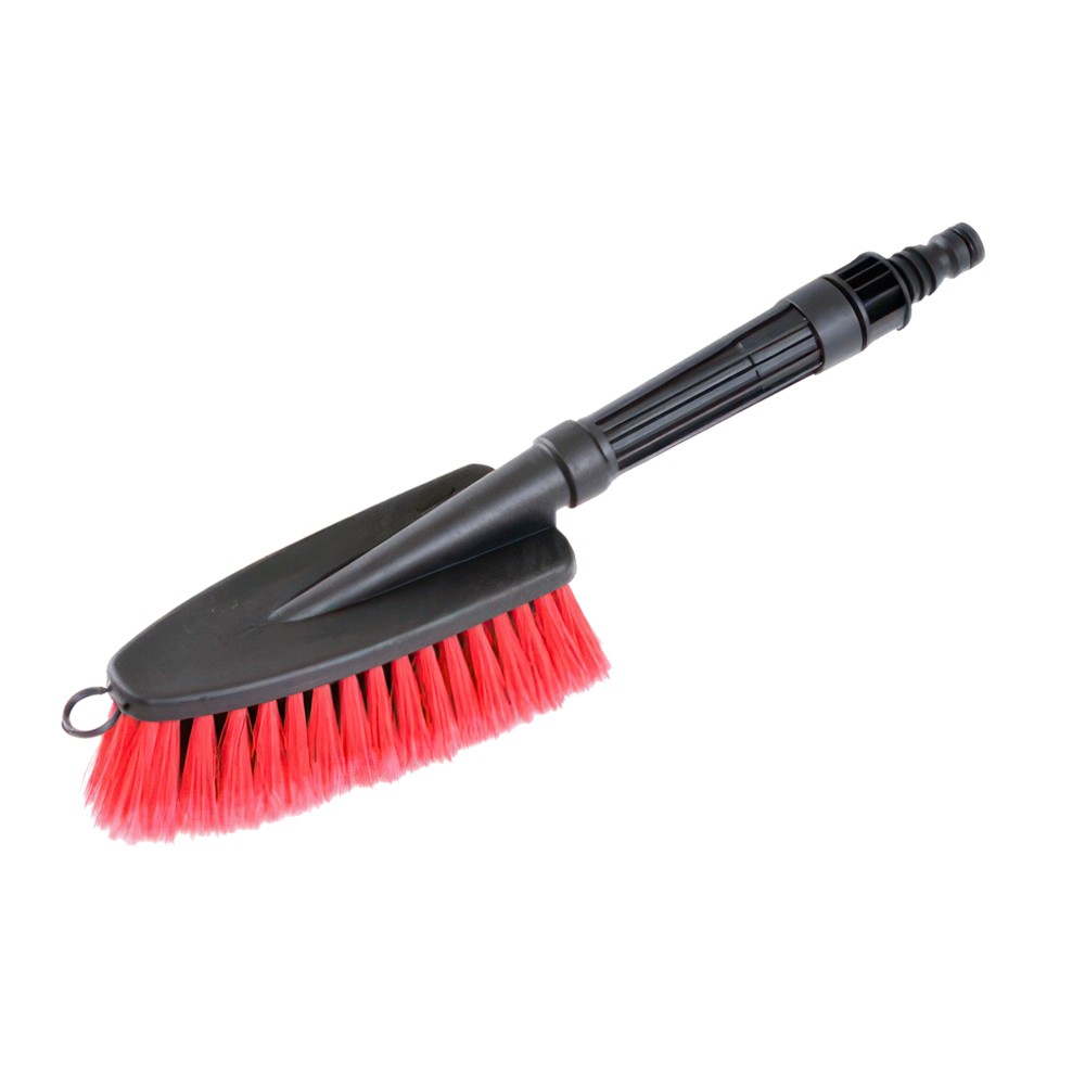 Furçë me fije artificiale për larjen e automjeteve e pajisur me rekorderi për të lidhur tubin e ujit. Karakteristikat: Fije të dendura poliesteri që janë të thyera në skaje me qëllim për të lehtësuar larjen dhe për të parandaluar gërvishtjen e bojës. Dorezë praktike për përdorim. Lidhje e shpejtë me bashkues ose direkt me tubin. Pajisur me një valvul që rregullon presionin e rrymës së ujit. Gjatësia: 33 cm