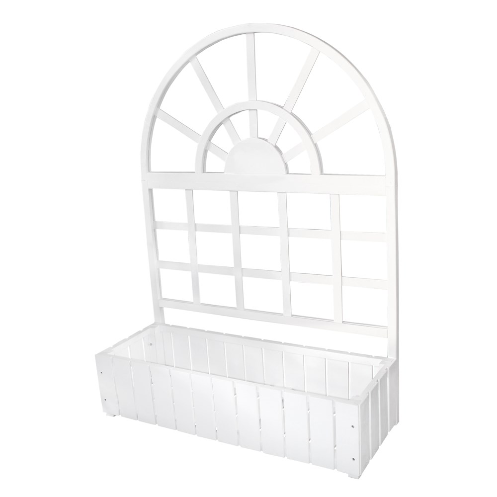 Po vlerësoni:Gardh druri i trajtuar 116x3.5xH156cm, me vazo lulesh 116x28.4xH42cm, ngjyra e bardhë