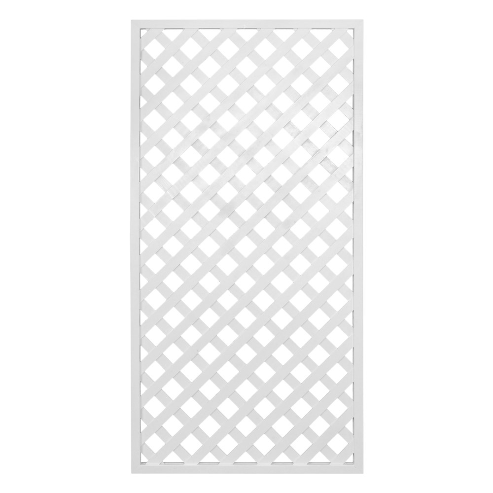 Gardh druri i trajtuar, 90x180 cm, spesori kornizës 35x35 mm, spesori ristelës 5x35 mm, kuadrati 65x65 mm, ngjyrë e bardhë