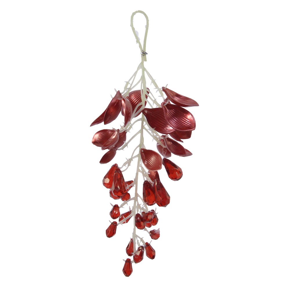 Gjethe dekorative akriliku, në ngjyrë të kuqe dhe me përmasa 24 cm. Ky aksesor dekorativ mund të përdoret për të dekoruar pemën e Vitit të Ri, duke shtuar magjinë e festave në ambientet tuaja festive të fundvitit.