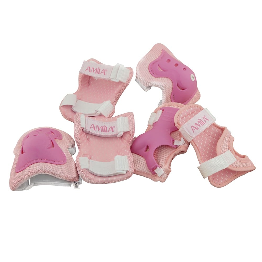 Seti baze permbrojtjen e gjymtyreve te femijeve tuaj. Komoditet dhe siguri per patinazh, skuter ose skateboard. Mbrojtes dore, mbrojtese per brryl dhe gjunje. Mbrojteset jane baza per nje praktike te sigurt. Shiriti vetengjites ju lejon te rregulloni madhesine.