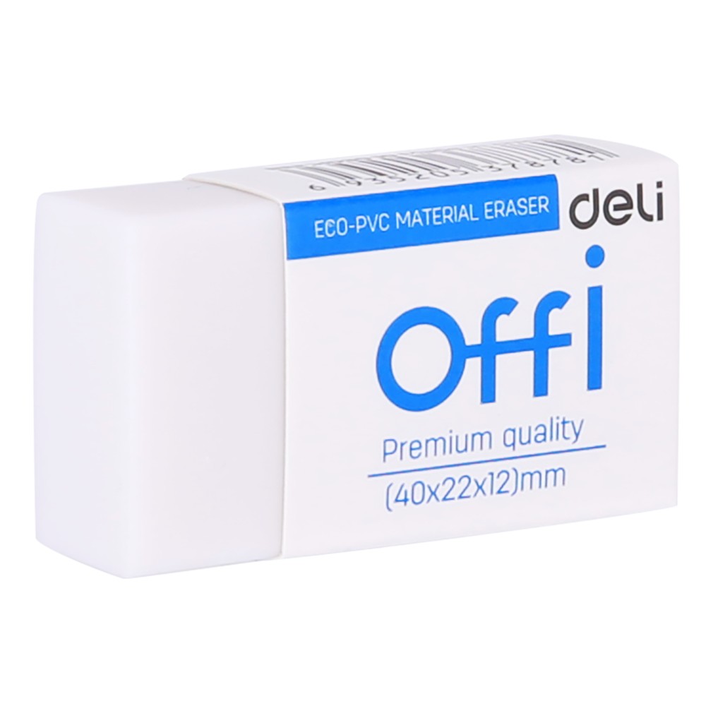 Gome Deli, e bardhë, me përmasa 4 x 2.2 x 1.2 cm. Praktike për fshirjen e shënimeve dhe gabimeve në letër, e përshtatshme për përdorim në zyrë dhe në shkollë.