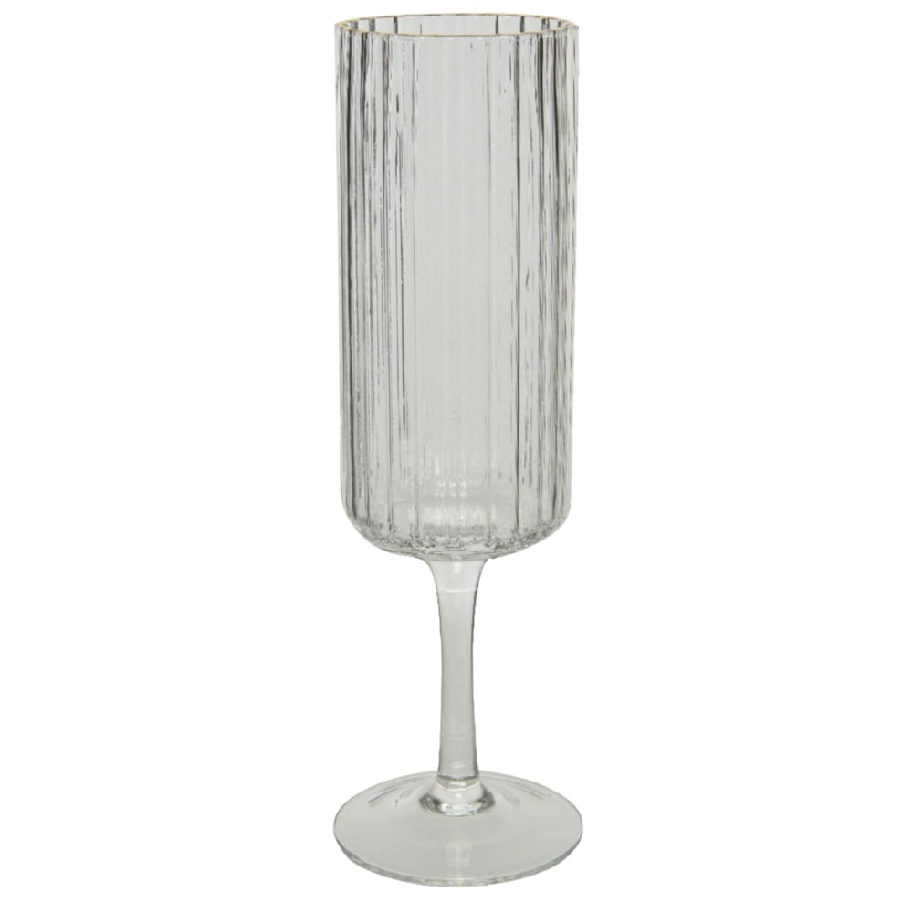 Gota e shampanjës është një zgjedhje elegante dhe festave për të festuar momentet e rëndësishme. E projektuar për të theksuar shkëlqimin e flluskave dhe shijen e pijeve, ajo është një element thelbësor për çdo tryezë festive. E punuar nga material qelqi cilësor, kjo gotë është e qëndrueshme, transparente dhe e lehtë për t'u pastruar. Qelqi i pastër vë në pah flluskat e arta të shampanjës, duke e bërë përvojën e shijimit edhe më të veçantë. Me një diametër prej 6.3 cm dhe lartësi prej 24.6 cm, gota ka formën klasike të quajtur "coupe", e cila lejon aromën të shpërndahet lehtësisht. Këmba e saj e hollë ju lejon të mbani gotën pa e ngrohur pijen. Kjo gotë është një zgjedhje e shkëlqyer për të shërbyer shampanjë, verë të gazuar, ose kokteje. Ajo kombinon funksionalitetin me elegancën, duke e bërë një shtesë të domosdoshme për setin tuaj të gotave.