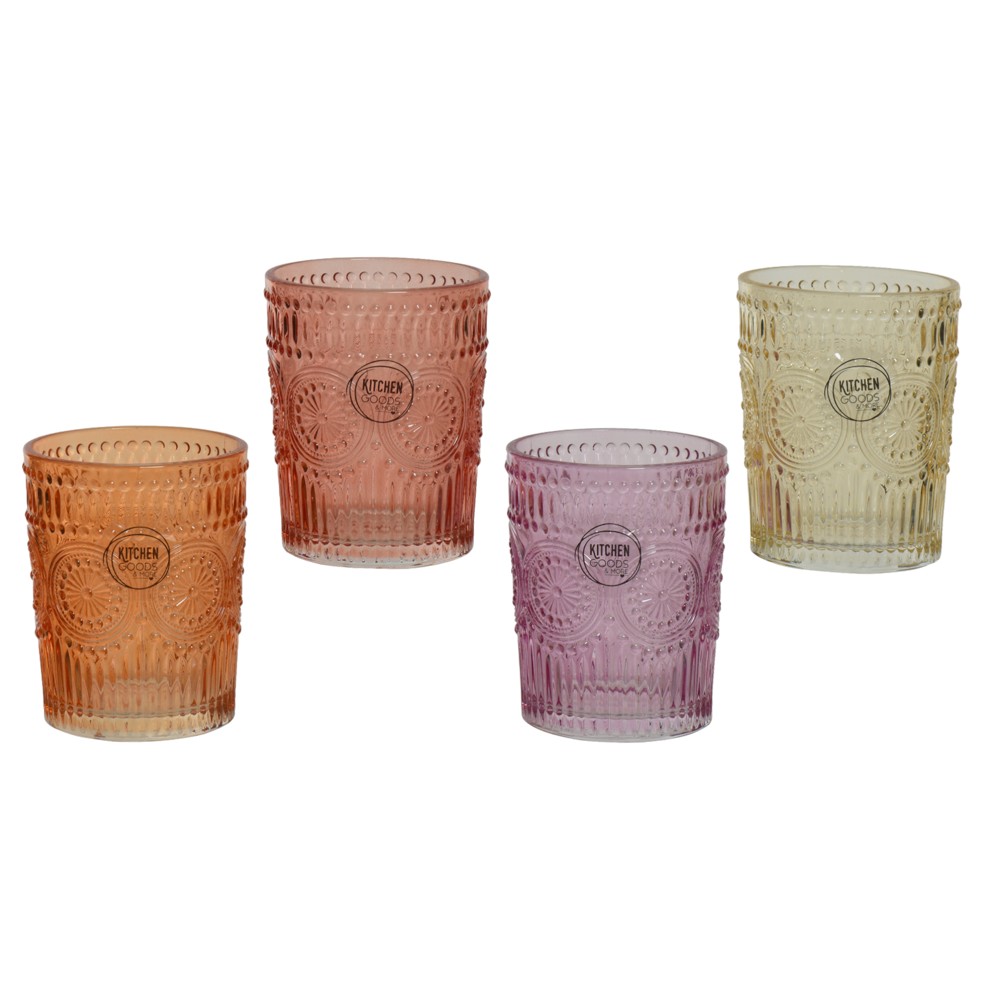 Gotë uji/lëngje, qelq, ngjyra të ndryshme, Dia.8xH10 cm / 300 ml
