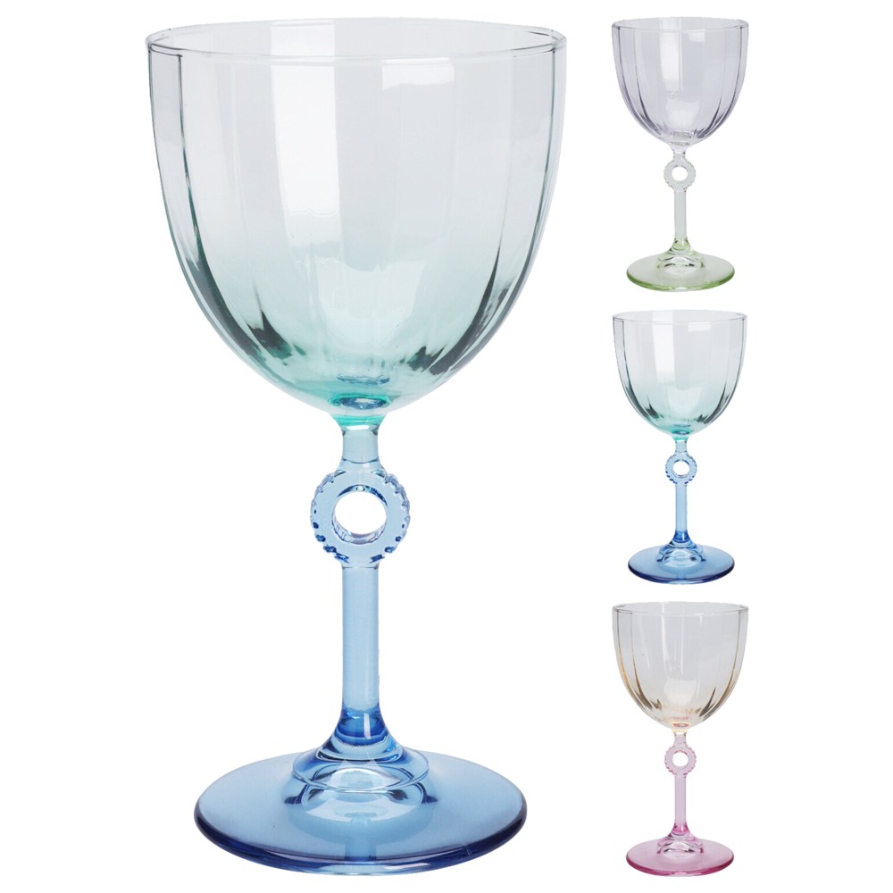 Kjo gotë vere elegante prej qelqi vjen në ngjyra të bukura si blu, jeshile dhe rozë. Me diametër 8.8 cm dhe lartësi 16.8 cm, ajo është perfekte për servirjen e verës apo pijeve të tjera, duke i dhënë një ndjesi të veçantë çdo momenti. Ideale për darka festive, grumbullime miqsh apo edhe përdorim të përditshëm për një prekje ngjyre dhe stili.