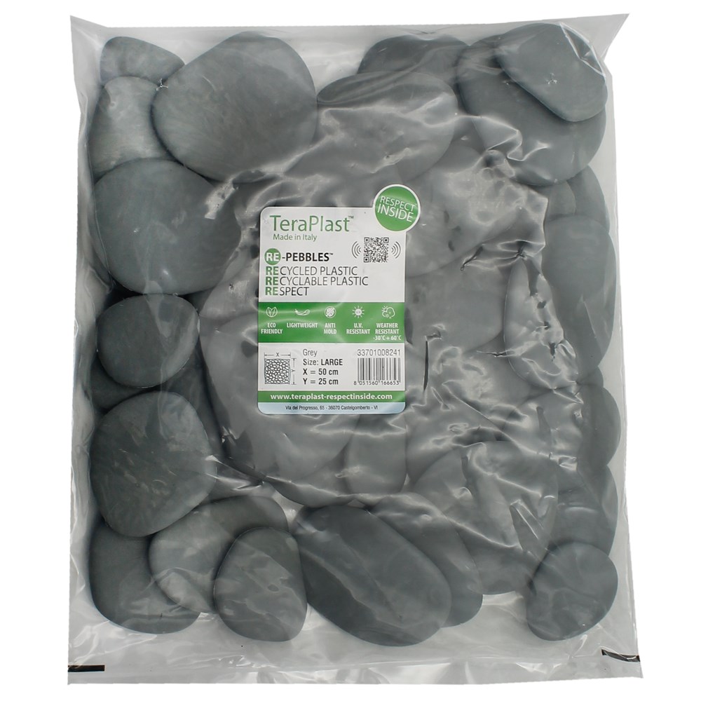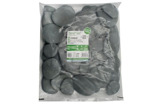 Gurët plastike të riciklouar nga Teraplast thyer barrierat në aspektim dekorative. Zgjidhni një mënyrë të re, miqësore me mjedisin për të zbukuruar rrethinën tuaj. RE-PEBBLES në forma dhe ngjyra të ndryshme mund të japin një kthesë të freskët në tenxhere dhe të shtoni një prekje të mrekullueshme dekorative në tarraca, kopshte dhe ambiente të tjera. Disa nga veçoritë: Të lehta; - Ekologjike: Jo-toksike dhe të riciklueshme; - Nuk mbajnë erë; Anti-myk; Të lehtë për t'u larë pa detergjente; Rezistente ndaj motit (-30°C deri + 60°C); Eko-miqësore; Rezistent ndaj rrezeve UV.