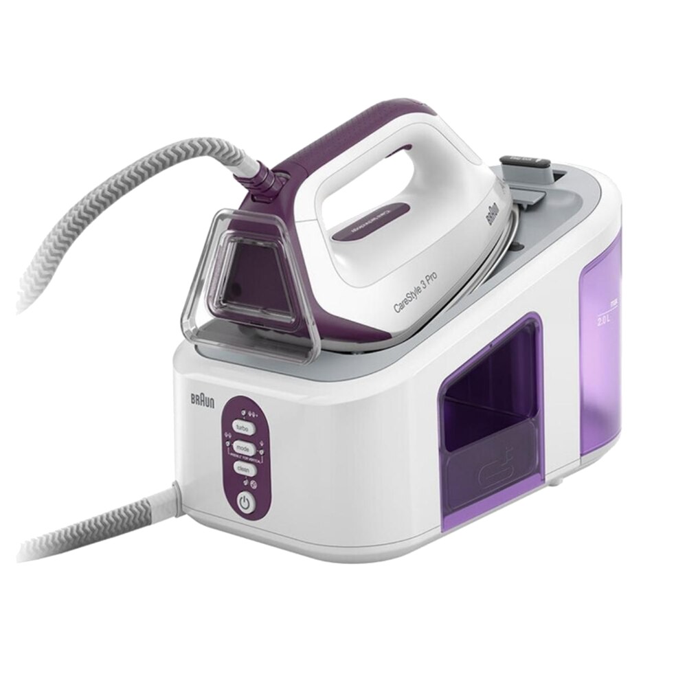 Stacioni i hekurit me avull Braun CareStyle 3 IS 3155 VI jep rezultate të shpejta dhe të lehta hekurosjeje. Pavarësisht nga madhësia e tij kompakte, ai ka një rezervuar prej 2 litrash që ju lejon të hekurosni deri në 2,5 orë pa pasur nevojë të mbushni ujin. Pllaka EloxalPlus me teknologjinë FreeGlide 3D ofron rrëshqitje 360° mbi çdo pëlhurë dhe çdo pengesë, madje edhe prapa. Kështu që nuk ngecni më në xhepa apo butona. Modaliteti inteligjent iCare mbron rrobat me një temperaturë të sigurt për të gjitha llojet e pëlhurave. Falë presionit më të lartë të avullit, avulli i imët mund të depërtojë plotësisht në pëlhurë dhe hekurosja është lojë e fëmijëve. Një sistem kundër pikave parandalon daljen e bezdisshme të ujit nga pllaka. Ekziston edhe sistemi i ri novator Easy CalcClean, i cili kërkon vetëm dy minuta për të hequr pluhurin.