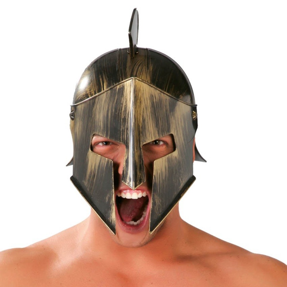 Helmetë gladiatori, prej materiali plastik, në ngjyrë gri. Përdoret si aksesor për veshje të ndryshme Halloween-i apo karnavalesh.
