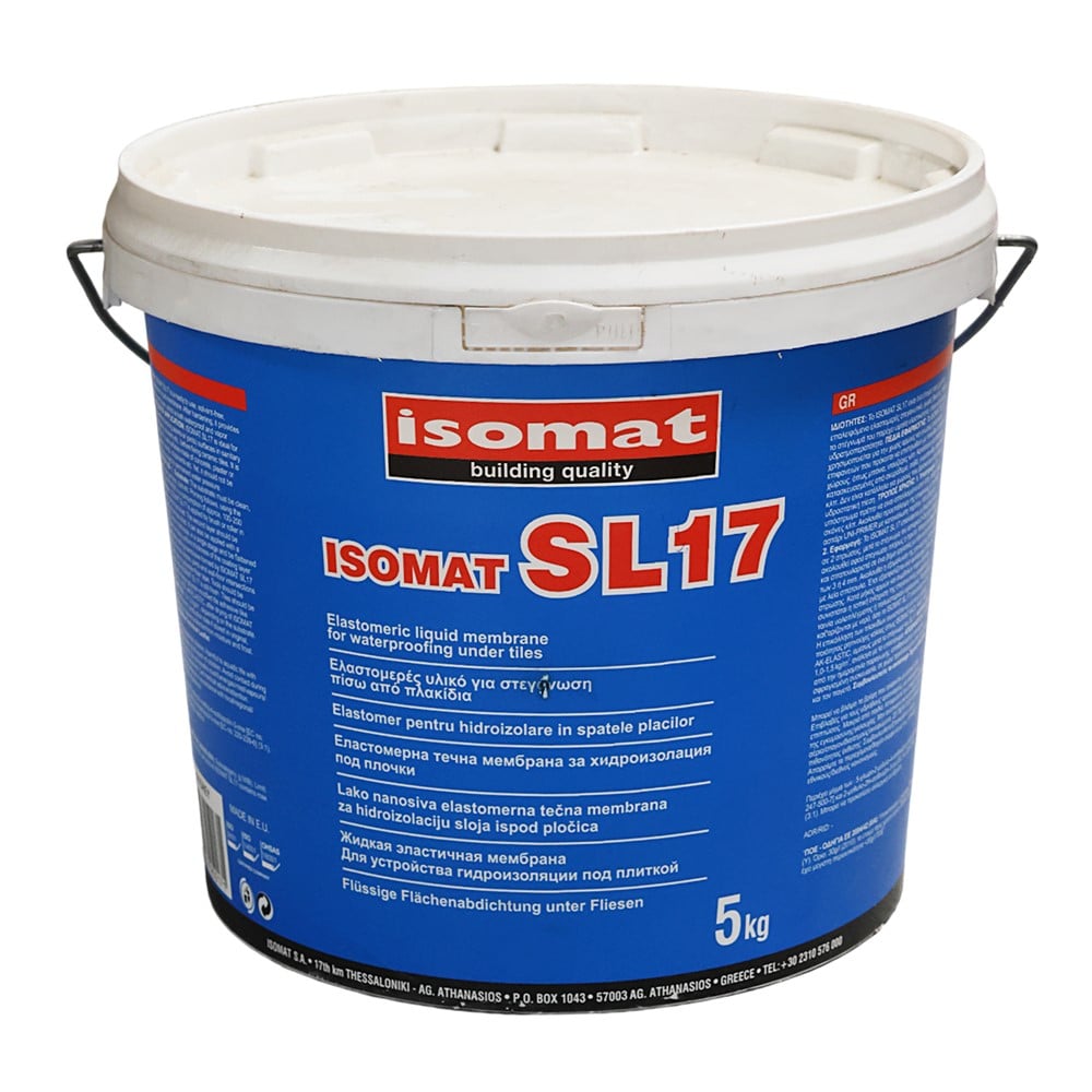 Isomat® SL 17 është material izolues elastomerik pa tretës, i gatshëm për përdorim që zbatohet me rul. Pas mpiksjes krijon një membranë shumë elastike që është kundra ujit dhe njëkohësisht e përshkueshme nga avujt e ujit. Isomat® SL 17 është ideal për hidroizolim (pa fuga dhe bashkime) të sipërfaqeve që do të shtrohen me pllaka qeramike, në mjedise me lagështi si banja, dushiera etj. I përshtatshëm për sipërfaqe prej betoni, suvaje, pllakash gipsi, pllakash zdrukthi etj. Por nuk duhet të përdoret në mjedise ku ka gjithmonë ujë me presion.