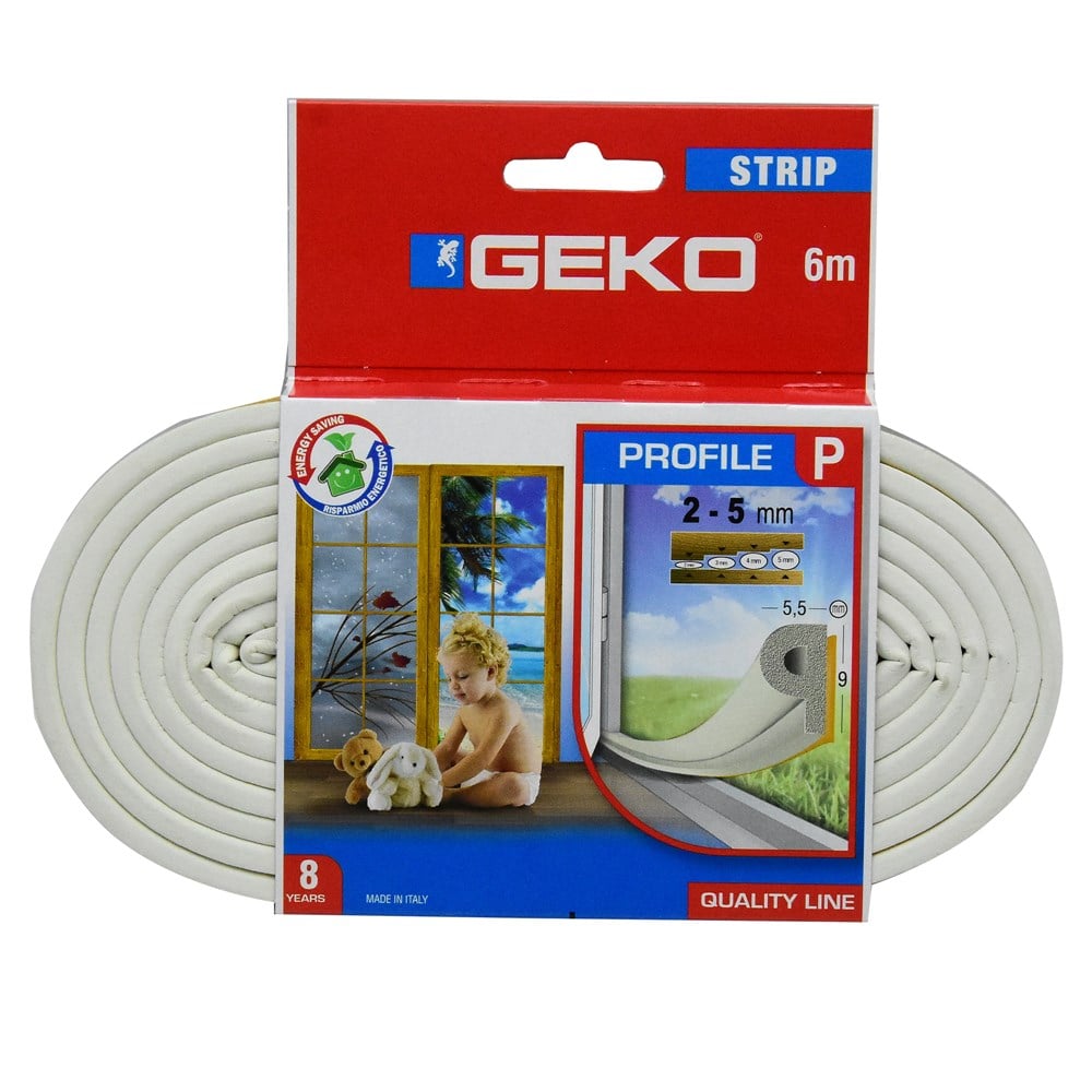 Po vlerësoni:Insulation for window and door frames, Geko, Strip, Profil P, 9 x 4 mm x 6 m, white