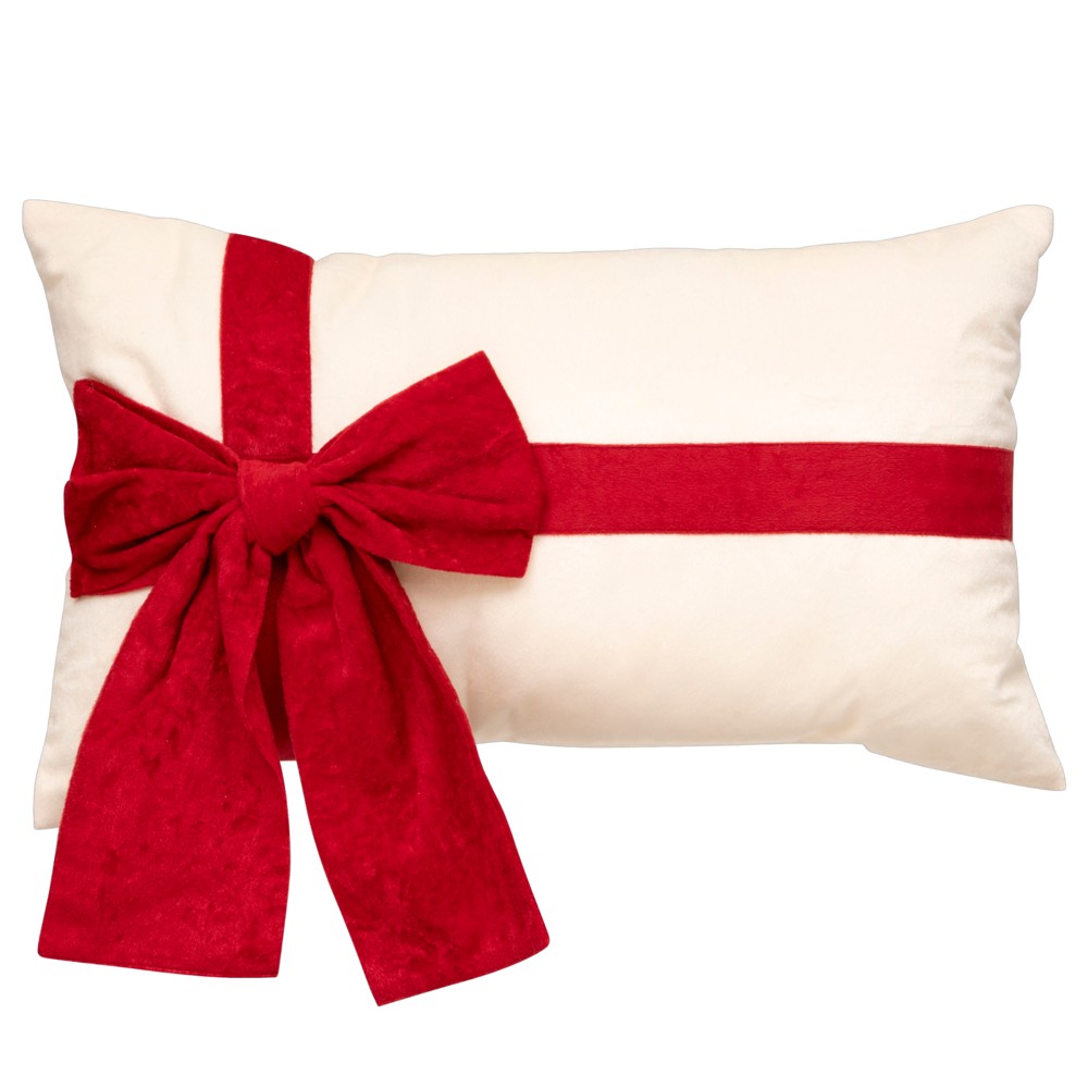 Decorative cushion, Christmas, polyester, red ribbon, white textile, L. 50 x P. 10 x H. 30 cm
