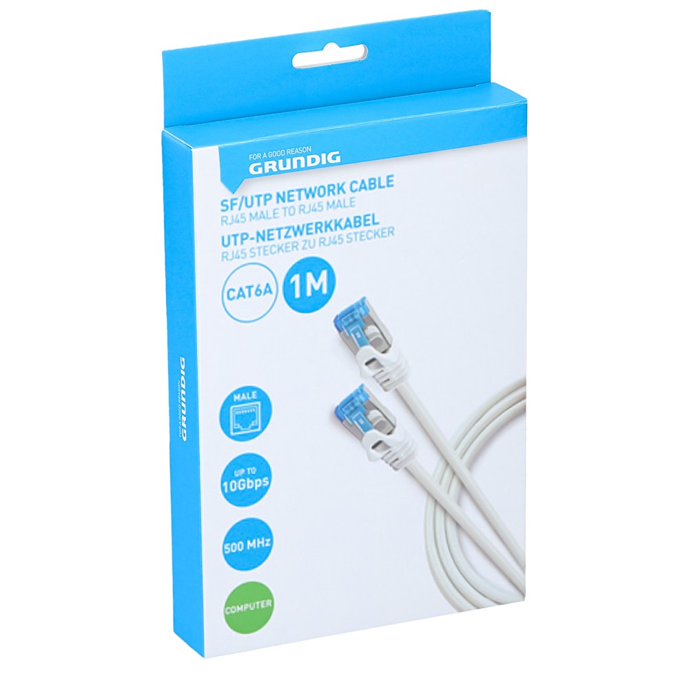 Grundig Ethernet Cable Cat.6a U/UTP është projektuar për aplikacione rrjeti me performancë të lartë. Është një kabllo e pambrojtur e çiftit të përdredhur (UTP) që mbështet shpejtësinë e transferimit të të dhënave deri në 10 gigabit për sekondë (Gbps). Kablloja është gjithashtu e pajtueshme me të gjitha standardet e mëparshme Ethernet, duke përfshirë Cat.5e, Cat.5 dhe Cat.3.