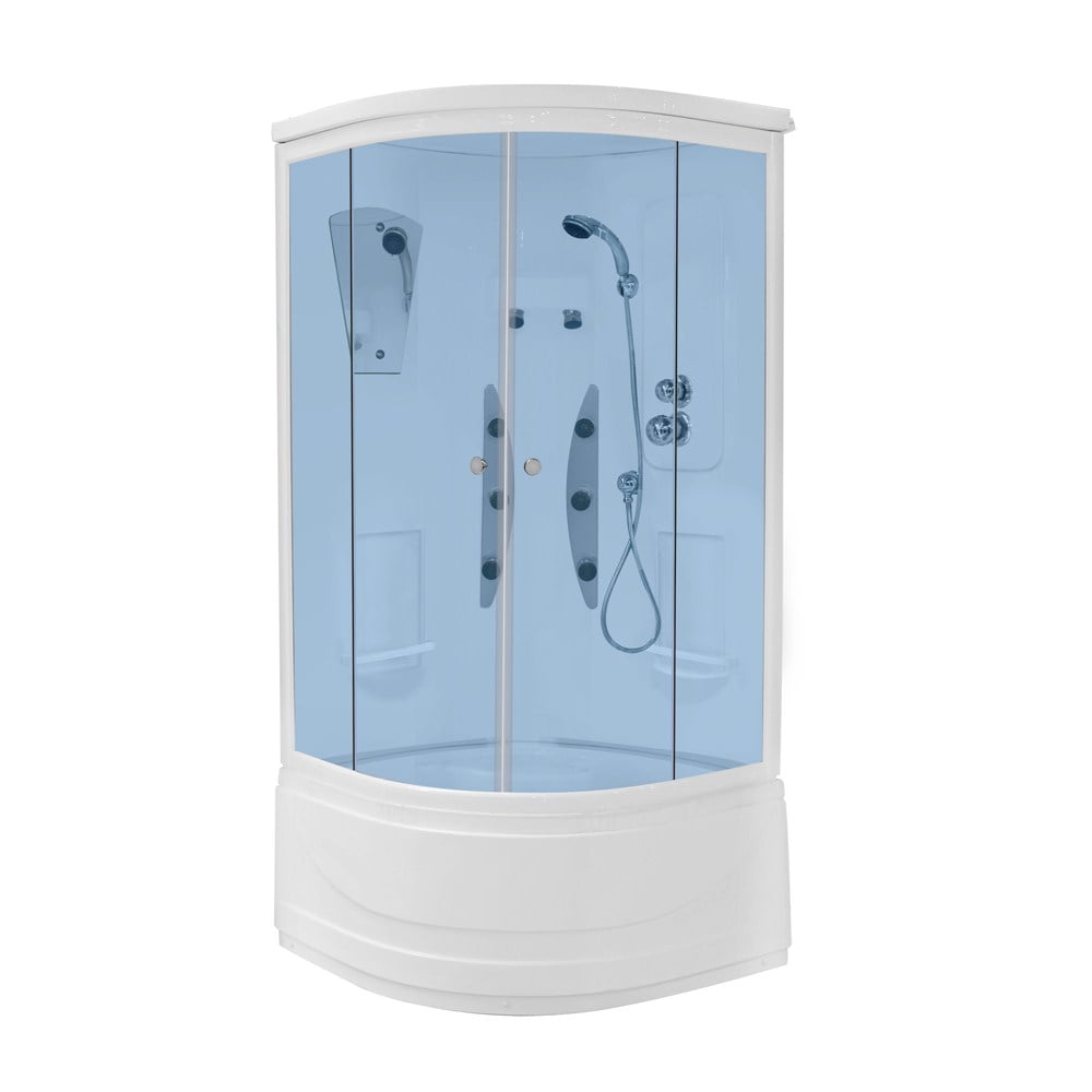 Kabine dushi me hidromasazh 90cm harkore, pllake akrilike, xhami blu i ndezur i temperuar 5mm.