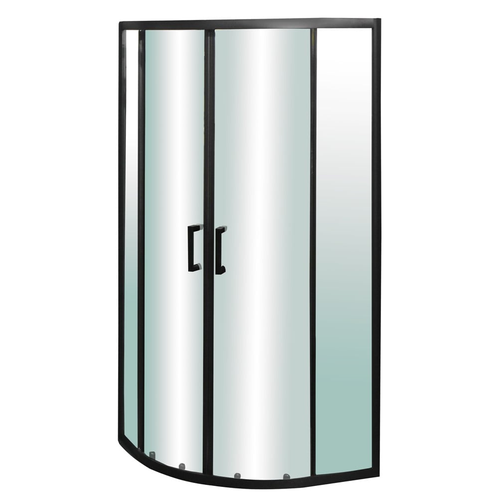 Kjo kabinë në formë harkore, përbëhet nga dyer me xham të temperuar i cili është katër deri në pesë herë më i fortë se xhami standart. Korniza prej alumini në ngjyrë të zezë siguron qëndrueshmërinë e strukturës me hapësirën prej 20 mm të rregjistrimit dhe është e lehtë për t'u montuar. Rulat dopjo sigurojnë rrëshqitje më të mirë dhe eleminojnë zhurmat e fërkimit. Doreza është material ABS në ngjyrë të zezë që e bënë më të lehtë hapjen dhe mbylljen e kabinës. Xhami transparent dhe korniza në ngjyrë të zezë kombinohet shumë mirë me aksesorët në ngjyrë të zezë për një pamje sa më moderne të tualetit tuaj.
