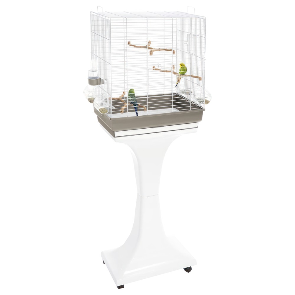 Kafazi për zogj Imac Camilla është një zgjedhje elegante dhe funksionale, e dizajnuar për t’u ofruar zogjve tuaj një ambient të rehatshëm, të sigurt dhe estetikisht të këndshëm. Me përmasa H50 x 30 x 57 cm dhe suport 129 cm, ai siguron hapësirë të mjaftueshme për lëvizje dhe argëtim. Struktura e qëndrueshme me ngjyrë të bardhë dhe gri i jep kafazit një pamje moderne që përshtatet në çdo ambient shtëpie. Kafazi vjen me aksesorët e nevojshëm për ushqim dhe ujë, si dhe vendqëndrime të posaçme që i mundësojnë zogjve të pushojnë me rehati. Falë cilësisë së materialeve dhe dizajnit praktik, Imac Camilla është një zgjedhje ideale për kujdesin dhe mirëqenien e zogjve tuaj.