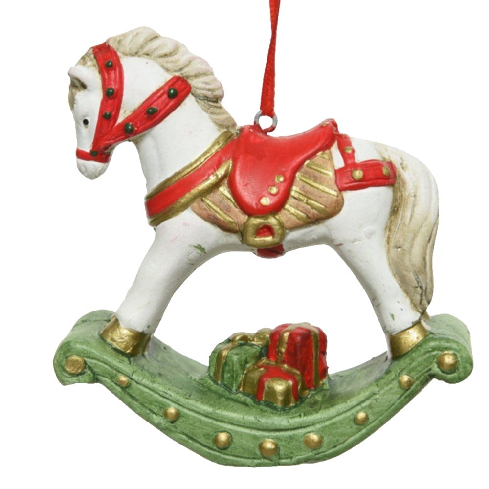Objekte të ndryshme dekoruese, të cilat ju i shtoni në pemën tuaj, kanë një rol të rëndësishëm në dekorin e saj. Shpesh herë sugjerohet që objektet dekoruese të jenë me ngjyra të ndryshme nga sferat pasi në këtë mënyrë ato do të vihen re më lehtësisht dhe do t'i shtojnë bukurinë pemës tuaj. Shtoni elementët e dekorit me këtë Kalë lëkundës dekorues me varje. Cilësi e mirë me një çmim konkurues