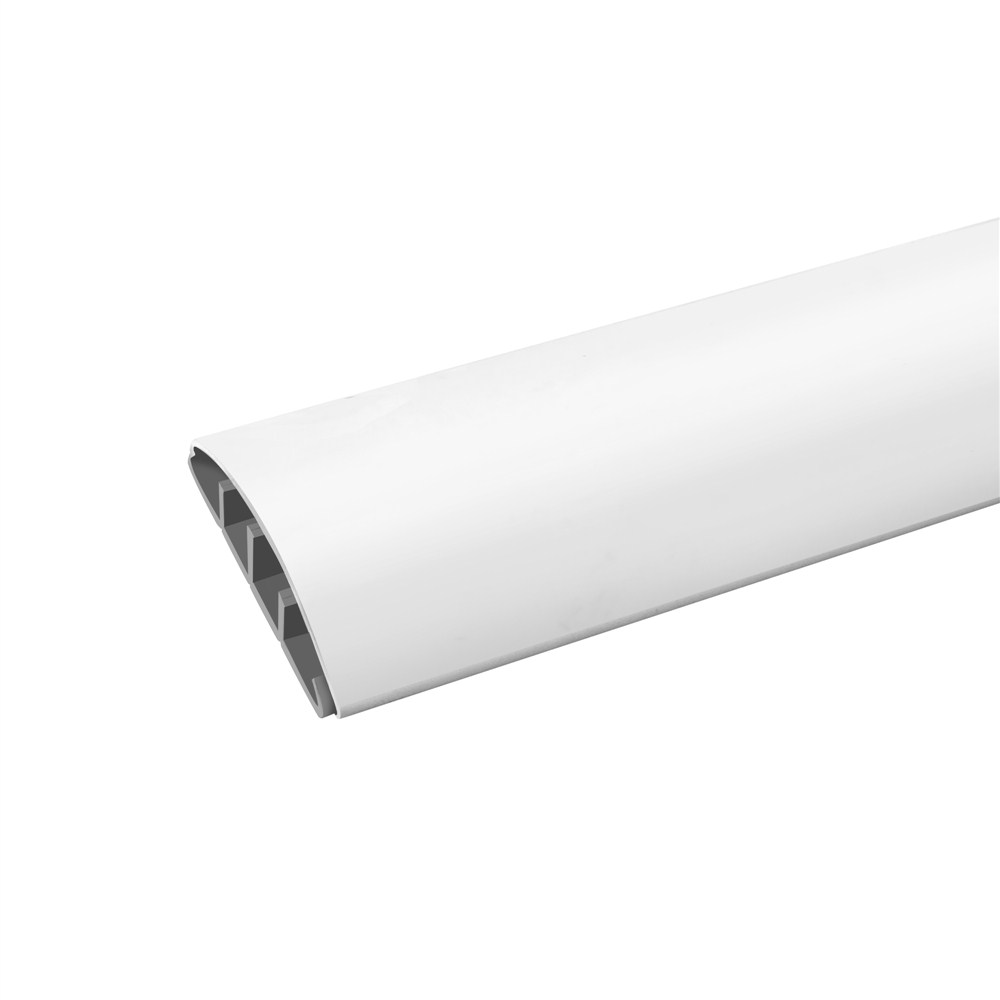 Kanalinat e dyshemesë, PVC, 18x75 cm, të bardha, kanë nje dizajn të veçantë, i cili integrohet në çdo ambient. Forma e konstruktit ndalon hapjen e kapakut në mënyrë aksidentale. Ofrojnë siguri dhe kanë përdorim të gjerë në sistemet elektrike.