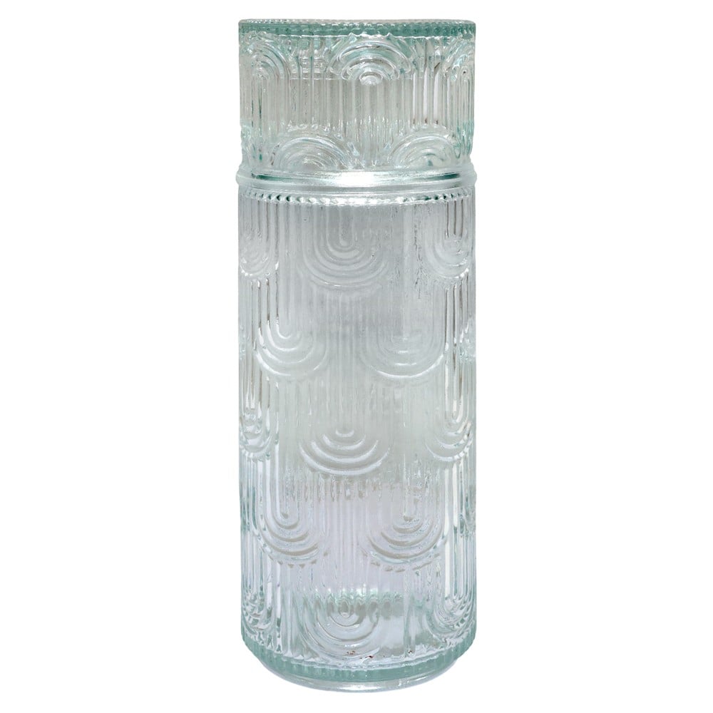 Shërbeni ujë, lëngje apo pijet tuaja të preferuara me stil me këtë kanë prej qelqi transparent. Me dimensione 22.5x8 cm, ajo ofron kapacitet të përshtatshëm dhe dizajn funksional për përdorim të përditshëm. Materiali i qelqit të qëndrueshëm siguron pastrim të lehtë dhe përdorim afatgjatë, ndërsa ngjyra jeshile i jep një pamje të freskët dhe moderne çdo tryeze.
