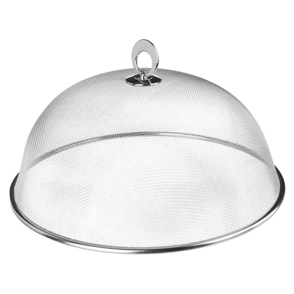 Kapak per ruajtjen ushqimore në ngjyrë argjendi dhe prej çeliku inox. Mbulesa ideale ushqimore për të mbajtur larg insektet dhe për ta lënë ushqimin tuaj të marrë ajër ose të ftohet me lehtësi.