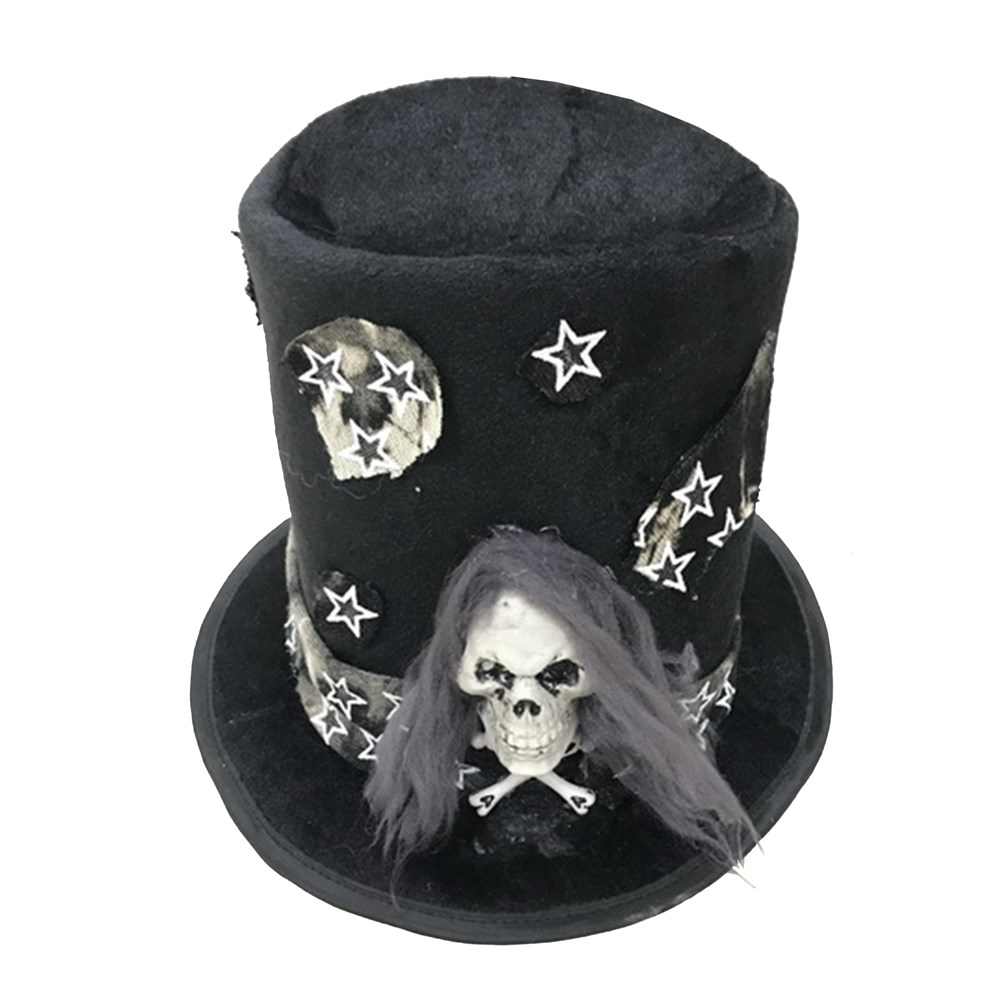 Kjo kapele e zeze me kafka dhe kocka do te shtoje nje element te frikshmem ne veshjen tuaj te halloweenit. Kapelja esht enje aksesor I mire per tu pershtatur me cdo veshje.