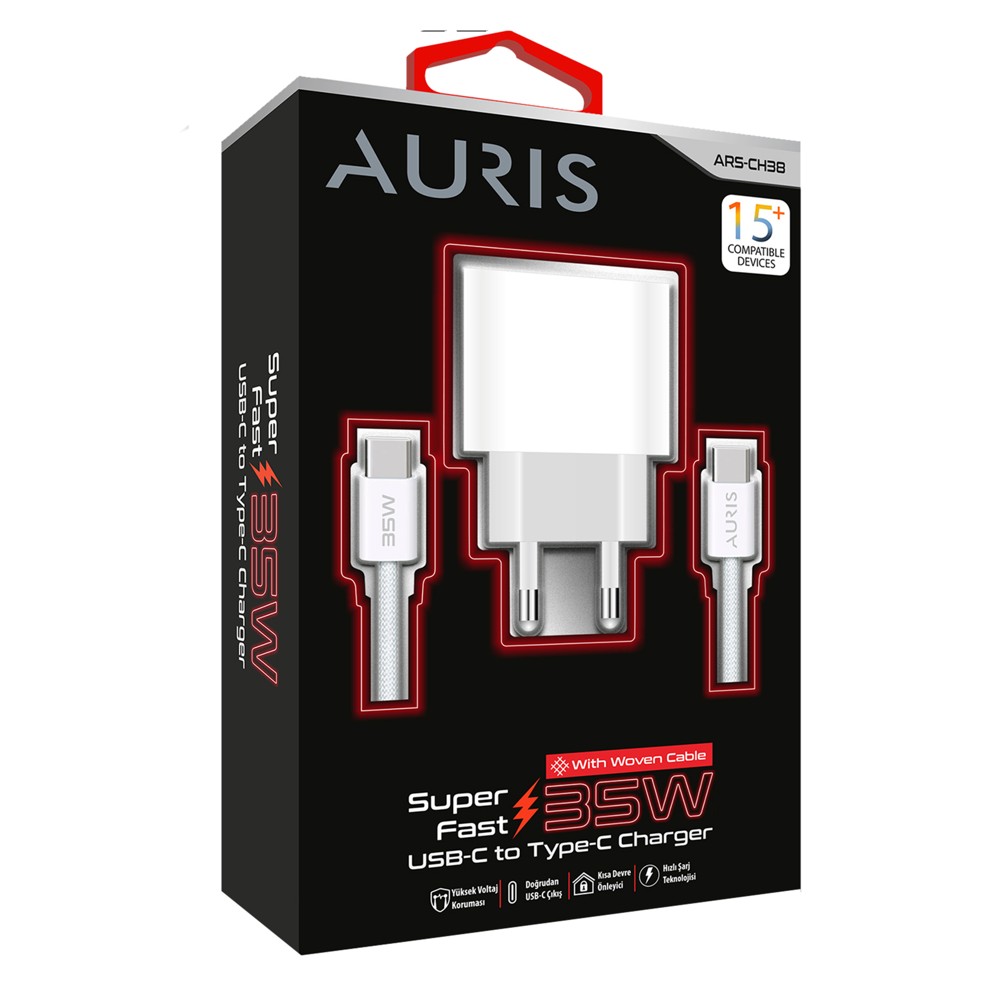Charger + plug, Auris, CH38, 35 W, Type-C plug - Type-C