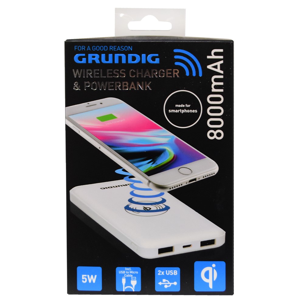 Wireless charger, Grunding, 8000 mAh, 2 USB ports