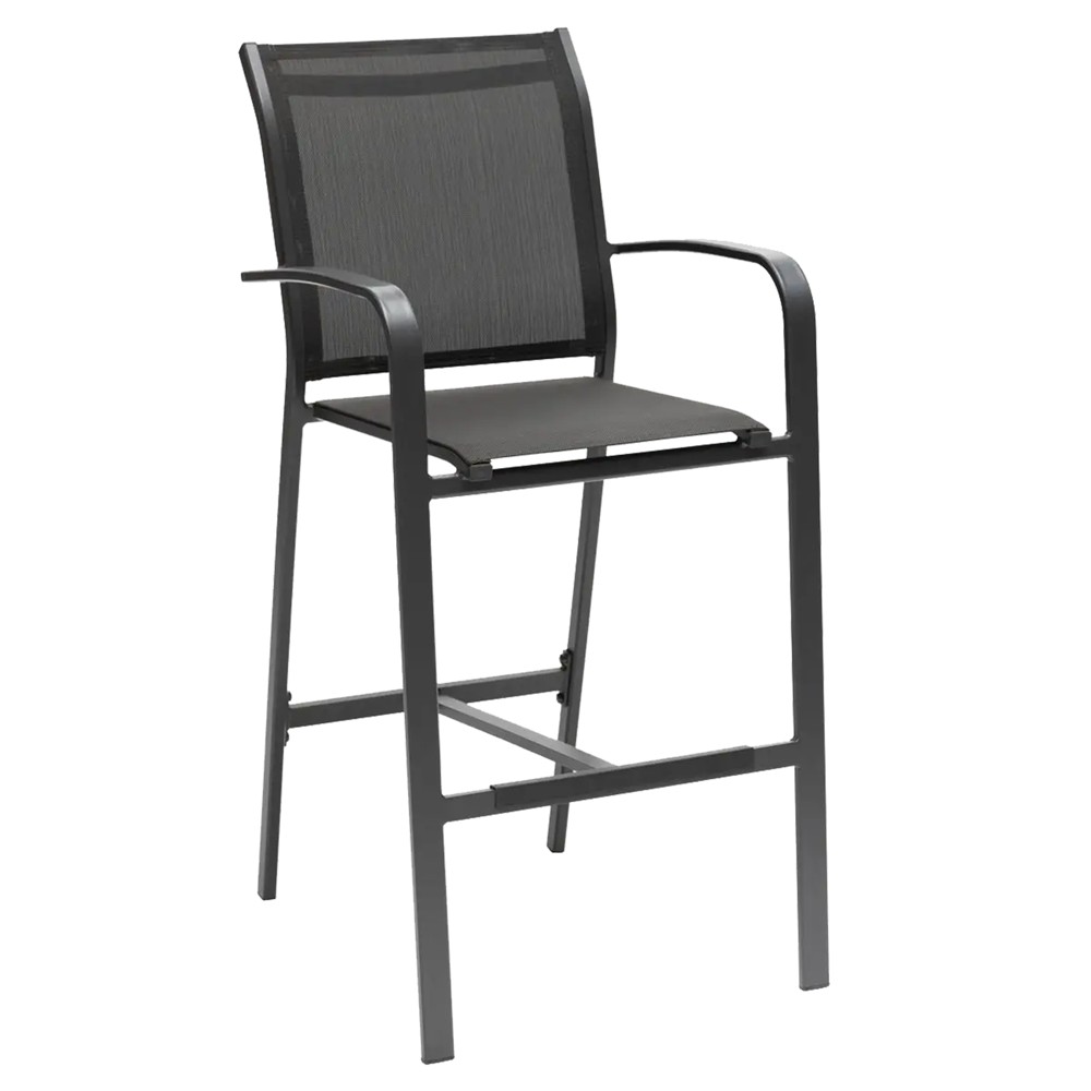 Karrige e lartë, e përshtatshme për bare. Karrigia është e prodhuar nga alumini dhe tekstileni, kjo e bën atë të përshtatshme të përdoret dhe në baret afër bregdetit, pasi alumini ka veti anti korrozion.