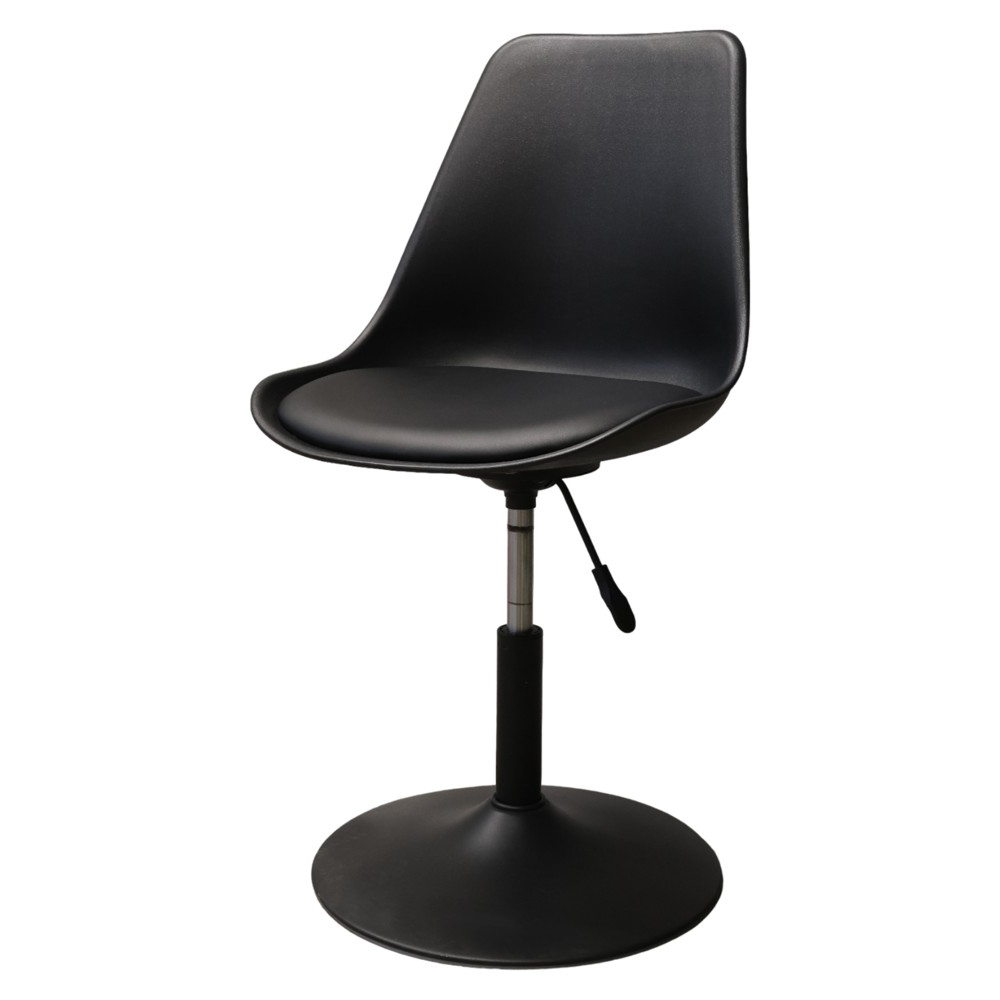 Karrige barit ka një ndenjëse të veshur me susta shumë në modë në formë guacke. E rregullueshme falë një doreze, ju mund të përshtatni lartësinë e sediljes midis sipas dëshirës. Baza e tij e gjerë siguron stabilitet të mirë.