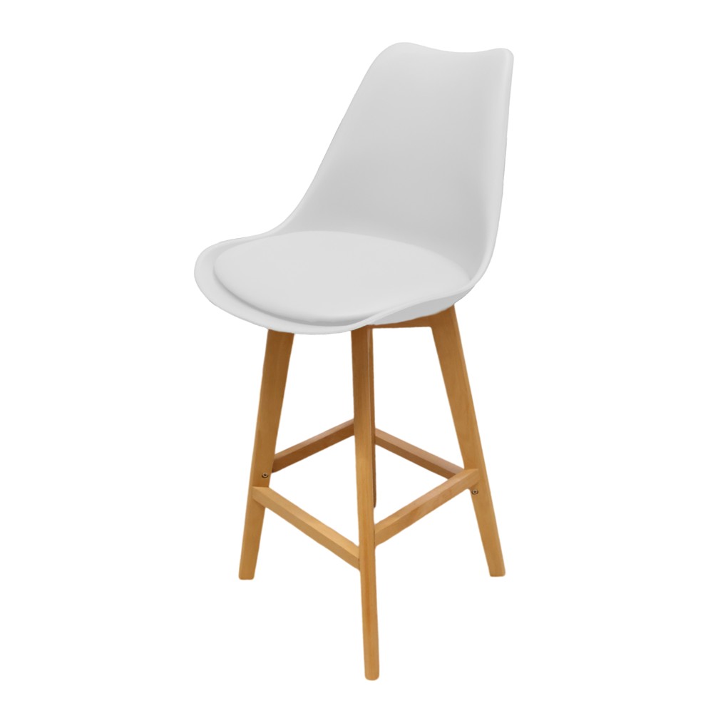 Po vlerësoni:Karrige bari, tapiceri PU, këmbë druri, e bardhë, 58x48x105 cm